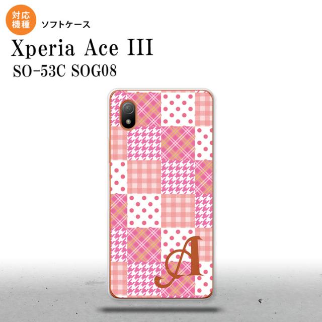 SO-53C SOG08 ワイモバイル Xperia Ace III スマホケース 背面ケースソフトケース パッチワーク ピンク +アルファベット 2022年 6月発売 nk-so53c-tp1061i