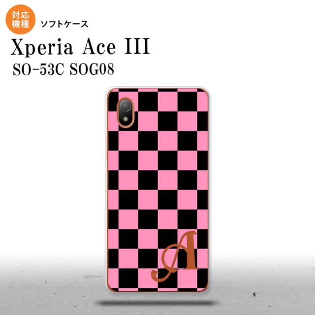 SO-53C SOG08 ワイモバイル Xperia Ace III スマホケース 背面ケースソフトケース スクエア 黒 ピンク +アルファベット 2022年 6月発売 nk-so53c-tp762i