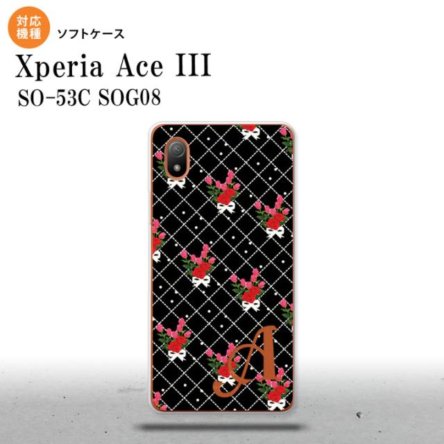 SO-53C SOG08 ワイモバイル Xperia Ace III スマホケース 背面ケースソフトケース 花柄 バラ 編み 黒 +アルファベット 2022年 6月発売 nk-so53c-tp267i