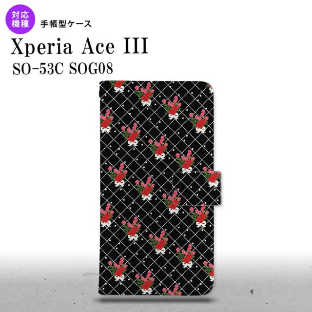SO-53C SOG08 ワイモバイル Xperia Ace III 手帳型スマホケース カバー 花柄 バラ 編み 黒