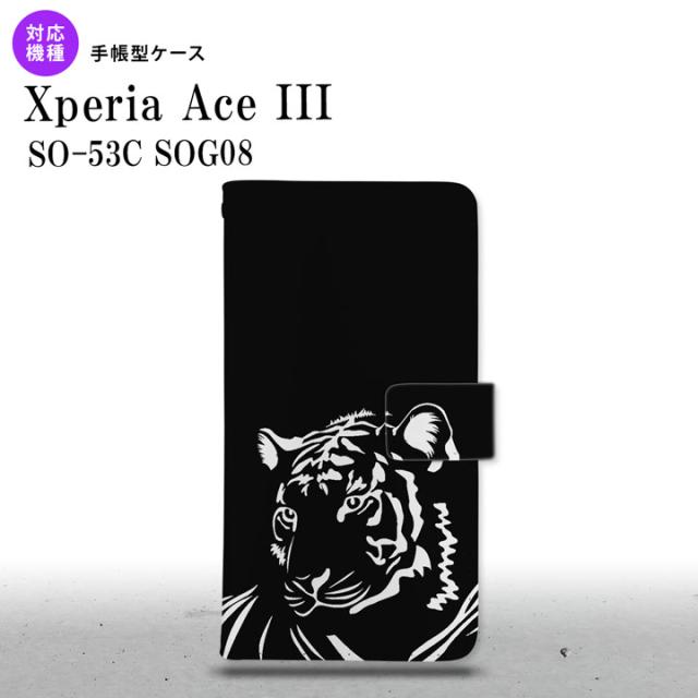 SO-53C SOG08 ワイモバイル Xperia Ace III 手帳型スマホケース カバー 虎 アップ 黒