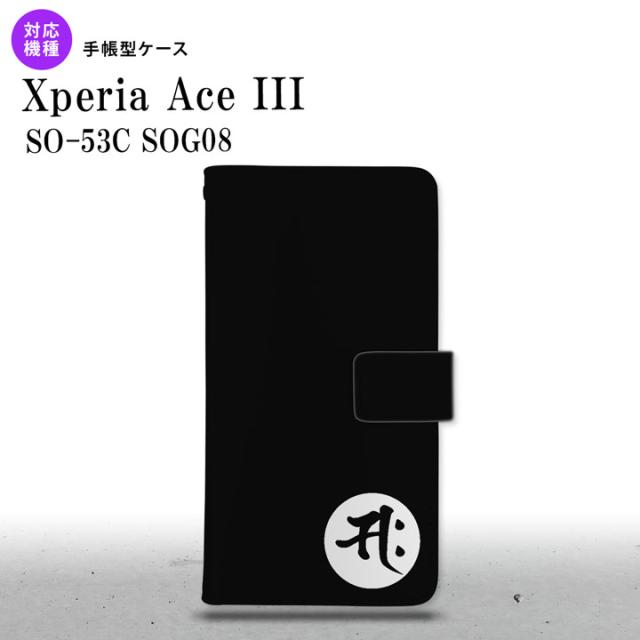SO-53C SOG08 ワイモバイル Xperia Ace III 手帳型スマホケース カバー 梵字 サク 黒