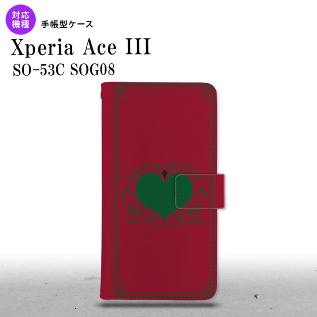 SO-53C SOG08 ワイモバイル Xperia Ace III 手帳型スマホケース カバー ハート 飾り 赤 緑