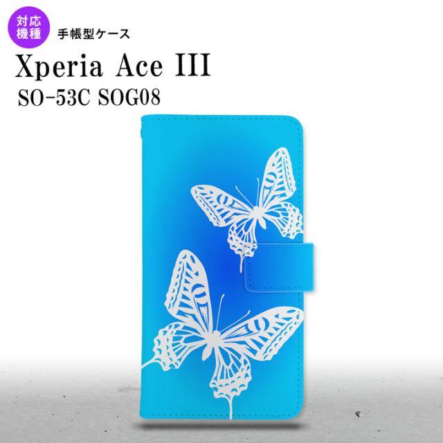 SO-53C SOG08 ワイモバイル Xperia Ace III 手帳型スマホケース カバー 蝶 青