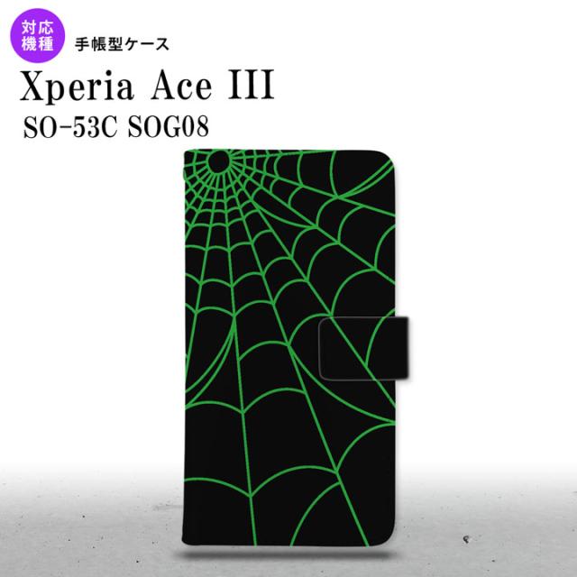 SO-53C SOG08 ワイモバイル Xperia Ace III 手帳型スマホケース カバー 蜘蛛 巣 緑