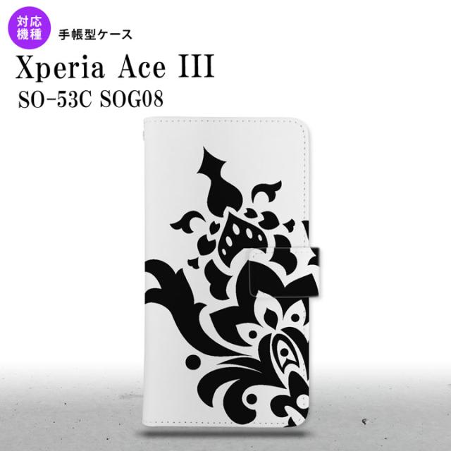 SO-53C SOG08 ワイモバイル Xperia Ace III 手帳型スマホケース カバー ダマスク 黒