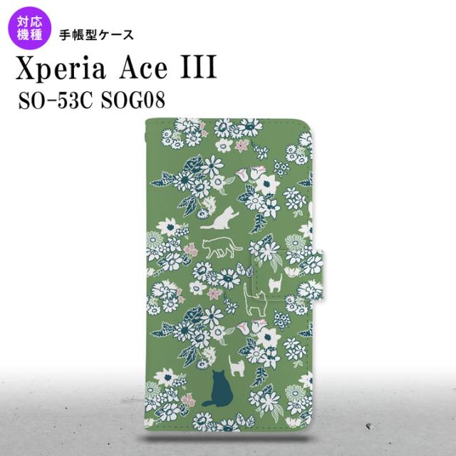 SO-53C SOG08 ワイモバイル Xperia Ace III 手帳型スマホケース カバー 猫 花 緑
