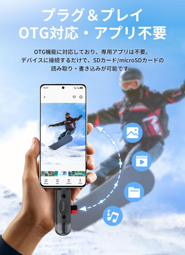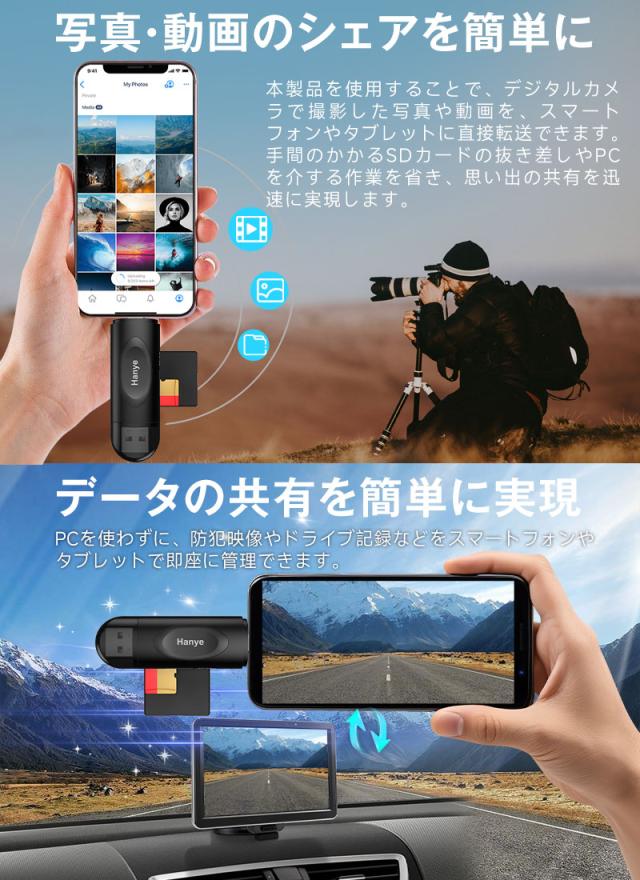 - 今まではPCを介して画像や音楽ファイルを転送していましたが、SDカードから直接転送できるのが気に入っています。 ネット機能がないカメラを所有しているので、SDカードからスマホに撮ったものを直接転送でき...