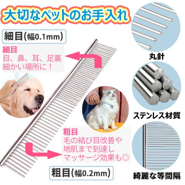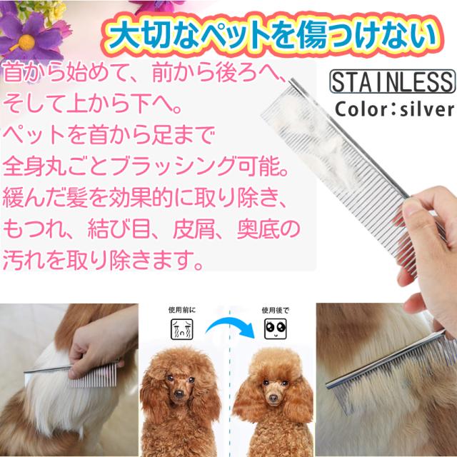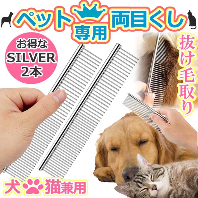 ペット コーム シルバー 両目 くし 2本 ステンレス 細目 粗目 犬 猫 ウサギ トリミング 毛 櫛 ステンレス製 抜け毛 毛取り もつれ毛 解し ドッグ キャット ブラシ グルーミング ペット用品 毛並み 整える 毛繕い 安全 2-NECORM-SV 送料無料