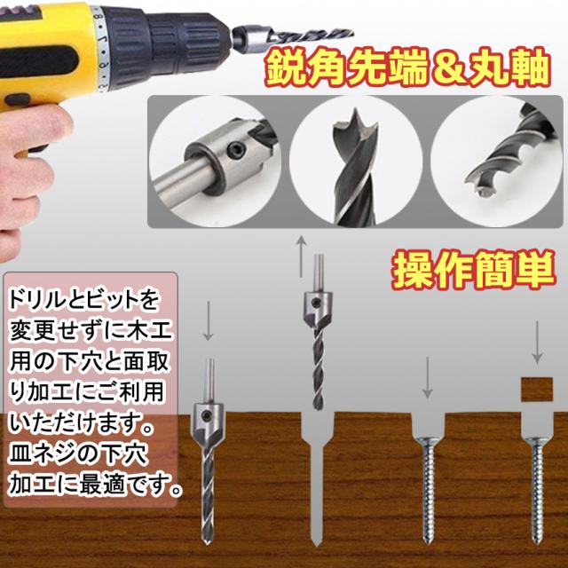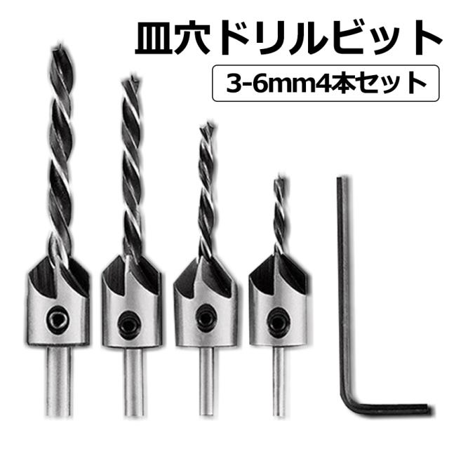 皿穴 ドリル ビット 4本セット 面取り カッター バリ 取り 皿取り 錐 ドリルビット 下穴 錘状ドリル 木工用 穴あけ 木材 工具 皿錐 DIY 穴開け SARAANA-4 送料無料