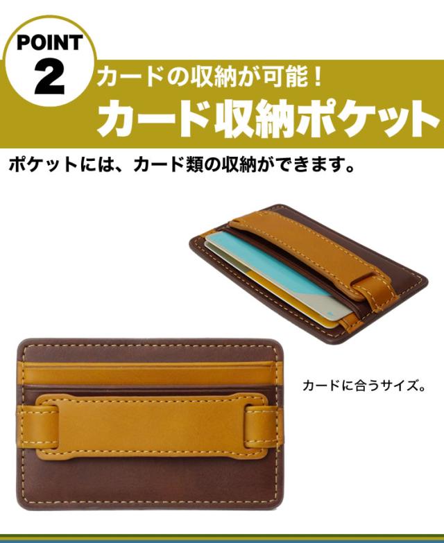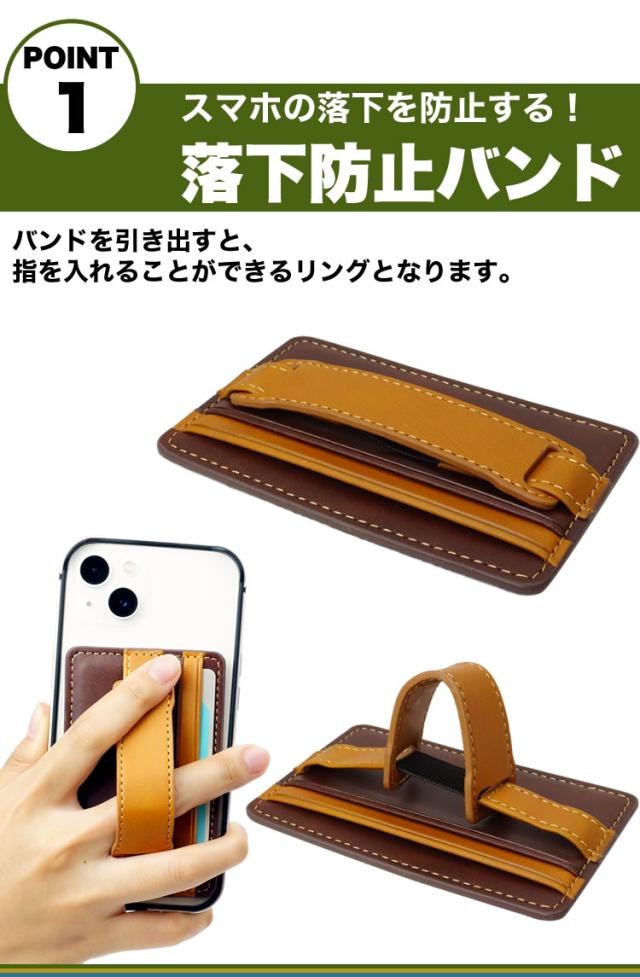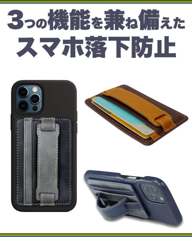 カードポケット搭載のスマホ落下防止。