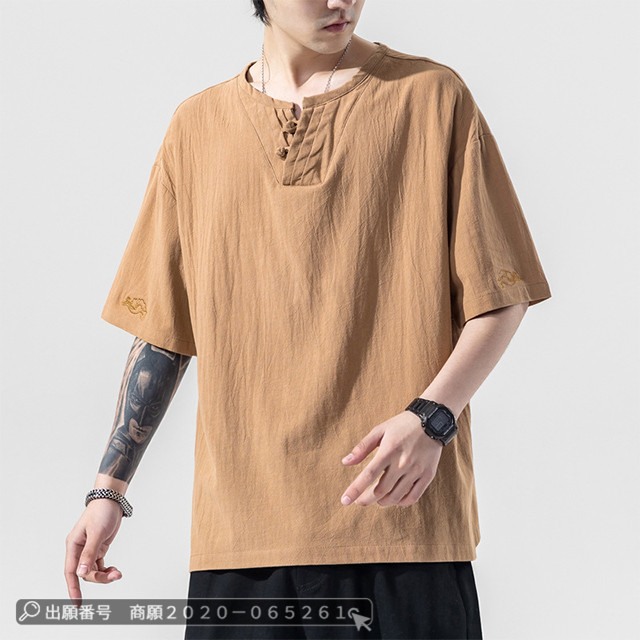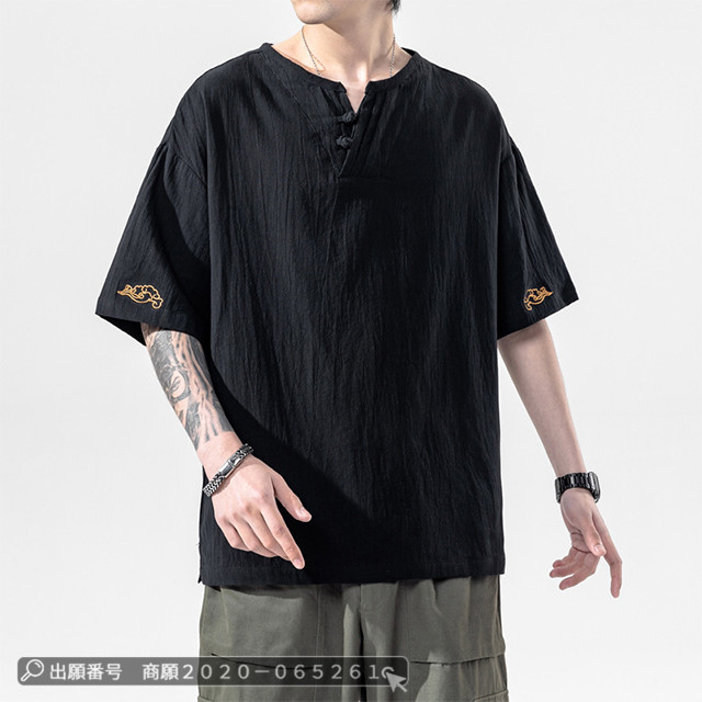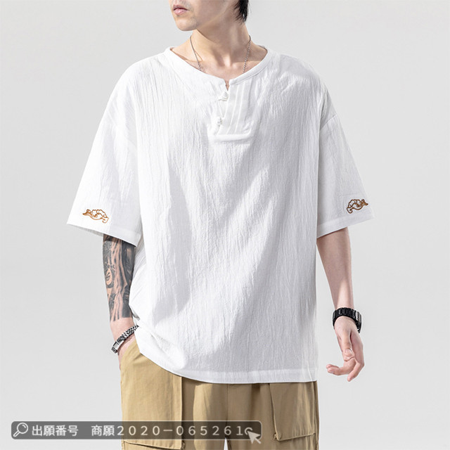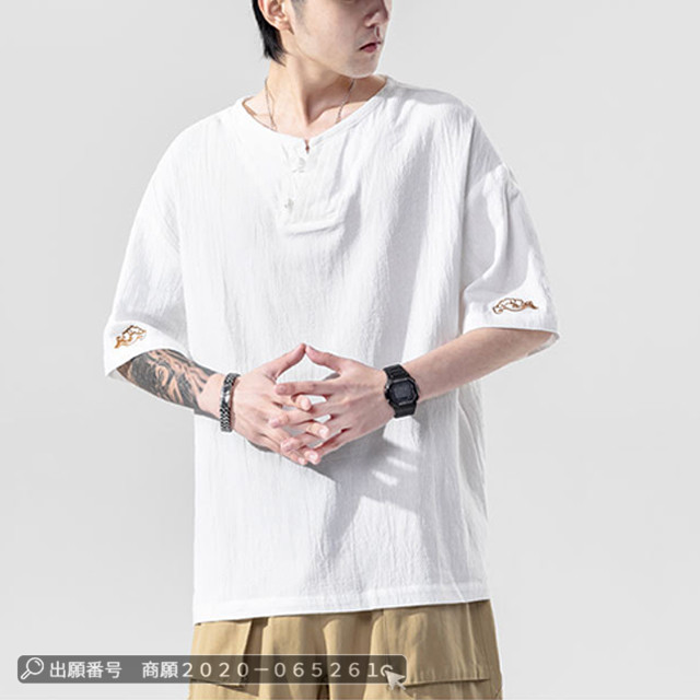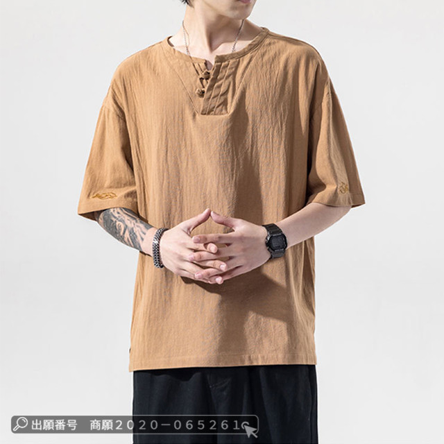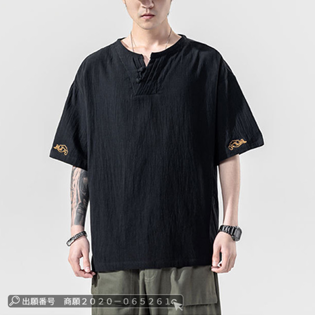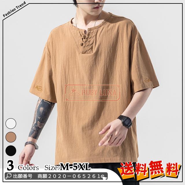 赤字覚悟 送料無料 Tシャツ メンズ 半袖Tシャツ クルーネック 夏服 刺繍リネンシャツ 大きいサイズ ゆったり ひんやり UVカット オーバーサイズ カジュアルTシャツ チャイナ服 メンズファッション