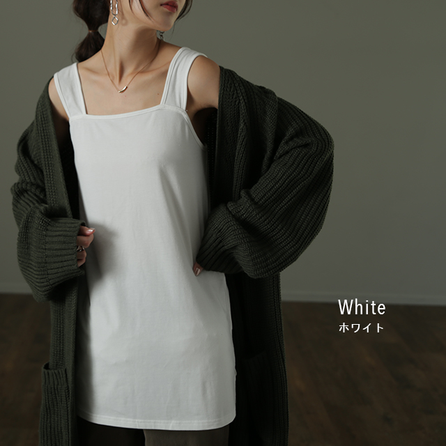 長い丈【ブラ紐・お尻隠し】 タンク インナー キャミソール キャミ ロング ロング 谷間 肌着 トップス お尻が隠れる レディース つけ裾 タンクトップ レイヤード ブラ紐隠し 重ね着 スクエアネック 体型カバー 大きいサイズ 肩紐 黒 ロング 白 冬 秋 秋新作