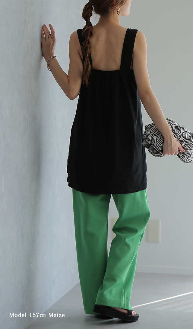 - 丈の長さや脇の角度等とても気に入りました。ロング丈のタンクトップずっと前から欲しかったのでいい買い物になりました。もう少し明るいカラーもあったらいいな。