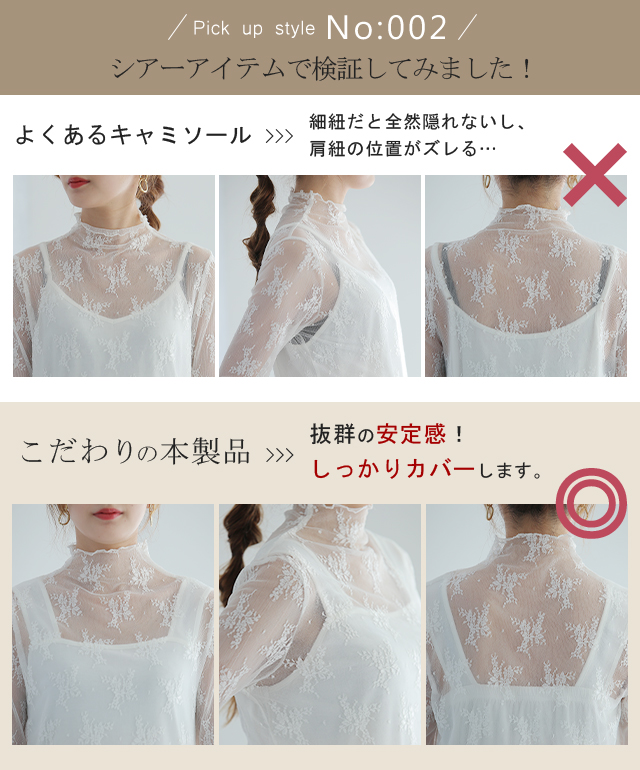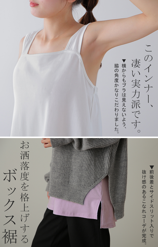 シンプルだから色々なトップスとレイヤードも楽しめる優秀インナー。