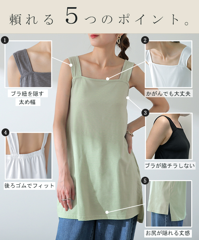 ロングタンクトップ チュニック ロングタンク ロングキャミ ロングキャミソール 長いインナー キャミソール レイヤード 重ね着 タンクトップ タンク チュニック チュニック丈 カットソー Tシャツ お尻が隠れる 大きいサイズ 体型カバー ブラ紐隠しインナー ブラ紐隠し ブラ紐 見せない ブラ ひも 付け裾 レイヤードキャミソール お尻が隠れる トップス 着回し ブラ紐 ブラ紐隠し 隠し キャミソール レイヤード レイヤードキャミソール レイヤードTシャツ パステルカラー タンクトップ タンク スクエア レディース 重ね着 レイヤードシャツ 大きいサイズ キャミ インナー インナーウエア インナーウェア 下着 肌着 付け裾 タンクトップ シャツ ルームウエア ルームウェア 部屋着 パジャマ 重ね着風 着回し 体系カバー レイヤードキャミ ノースリーブ 袖なし ブラストラップ隠しインナー 防止 谷間 胸元 脇隠し 肌隠し 下着 ランジェリー 隠す カバー 無地 シンプル 大きいサイズ オーバーサイズ ビッグシルエット トレンド 旬 大人 大人カジュアル オトナ 楽 らくちん らく 楽ちん 大きい 大きめ 長い 長め きれいめ キレイめ ビック ビッグシルエット ビック ビッグ 楽 らくちん らく 楽ちん ミディアム ミドル丈 ゆるカジ ゆるい ゆるファッション ゆったり ゆる カジュアル ナチュラル ベーシック テレワーク リモートワーク リモート 会議 オンライン飲み会 着回し 大人 大人カジュアル オトナ 女性 綺麗 きれレイめ 高見え 上質 上品 冷房対策 ライムグリーン グリーン ライム ネオングリーン ライトグリーン ラベンダー パープル ライトパープル ペールミント ミントグリーン ホワイト ブラック ストーングレー グレー チャコール チャコールグレー カーキ モスグリーン グリーン トープ ブラウン マスタード イエロー 黄緑 黄緑色 緑 緑色 紫 紫色 白 白色 黒 黒色 灰色 茶色 茶 黄 黄色 フリーサイズ フリー S M L LL 2L XL 3L XXL LLL 20代 30代 40代 50代 おしゃれ 春夏 春 夏 秋冬 秋 冬 お洒落 オシャレ かわいい 可愛い カワイイ HUGU ハグユー はぐゆー