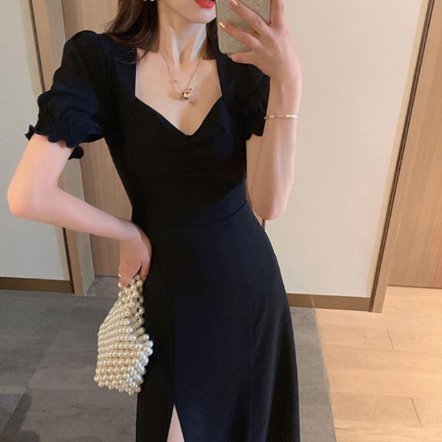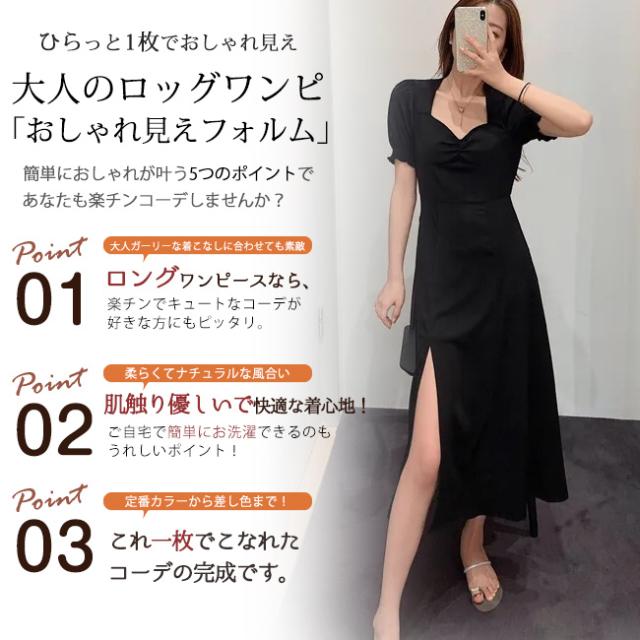 ワンピース フレアワンピース シフォン 半袖 パフスリーブ スリット マキシワンピース ヌケ感 ロング UVカット 大人カジュアル 無地 フレア 涼しい ロング丈ワンピース きれいめ レディース おしゃれ オフィス 通勤 結婚式 デート 大人 40代 30代 20代 服 新品 新作