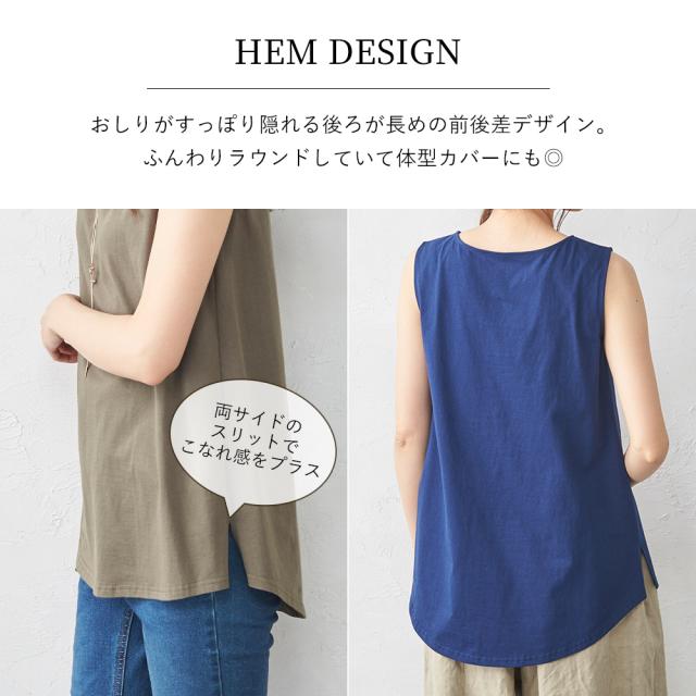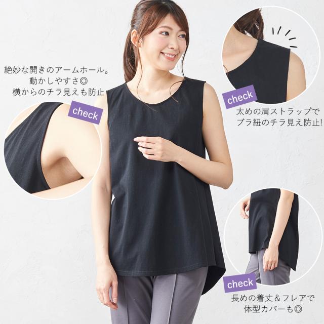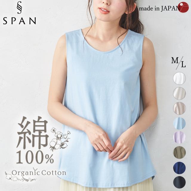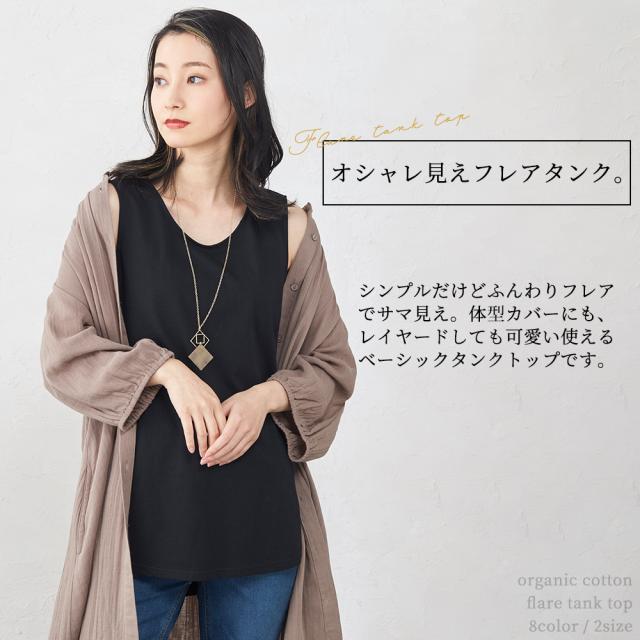 タンクトップ フレアタンクトップ ロング丈 5180761 レディース インナー オーガニックコットン 綿100% コットン 日本製 ブラ紐を隠せるインナー チラ見え防止 ブラ紐隠し レイヤード 重ね着