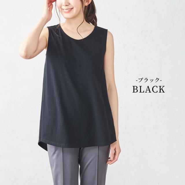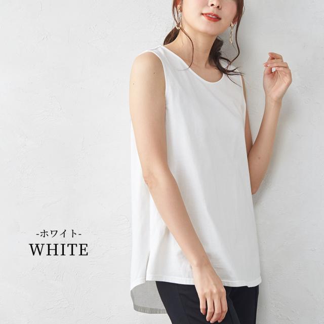オーガニックコットン フレア タンクトップ ロング丈 日本製 レディース キャミソール ブラ紐を隠せるインナー チラ見え防止 ブラ紐隠し 綿 綿100% コットン レイヤード 重ね着 黒 白 ホワイト ブラック 30代 40代 50代