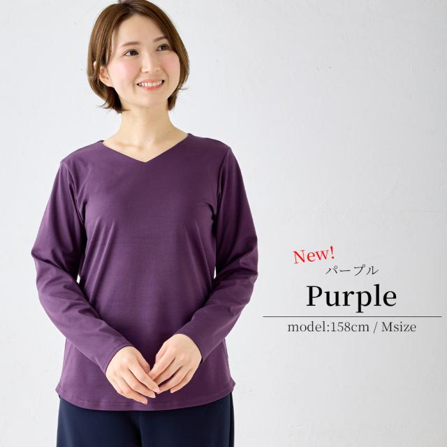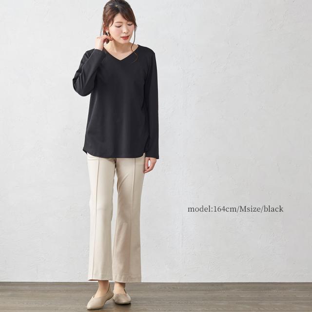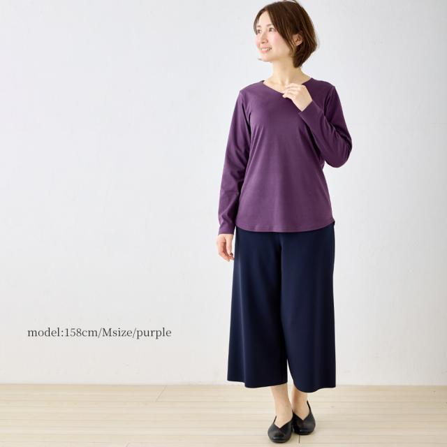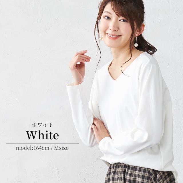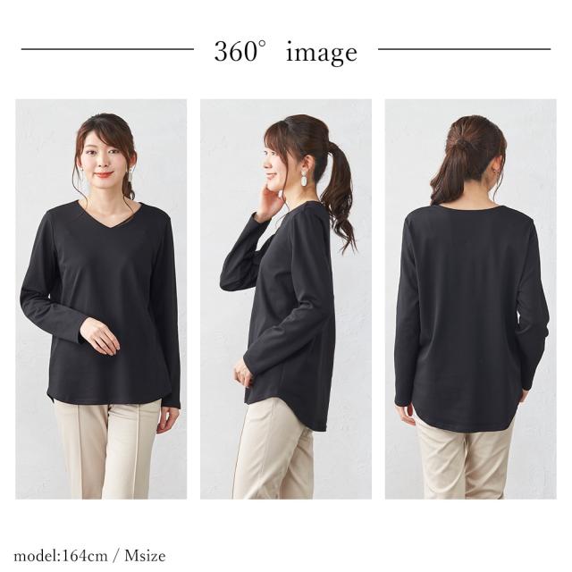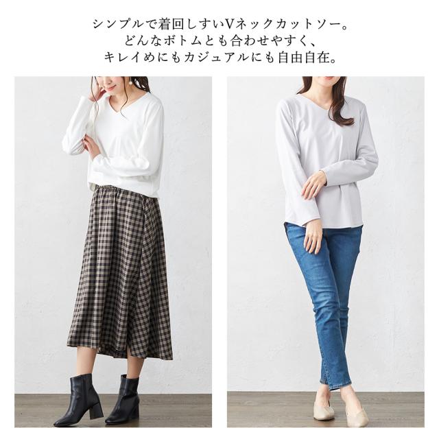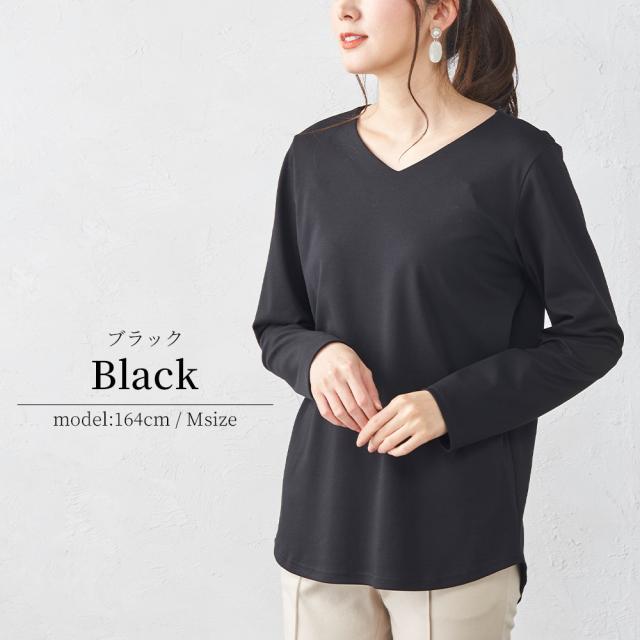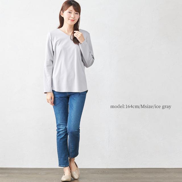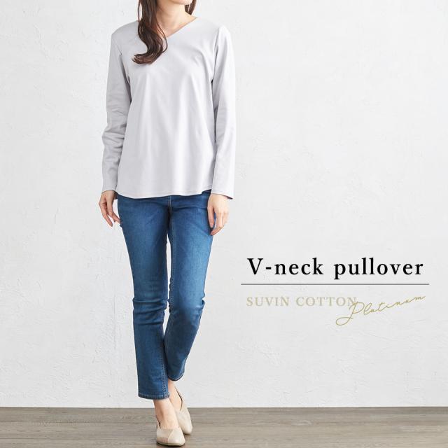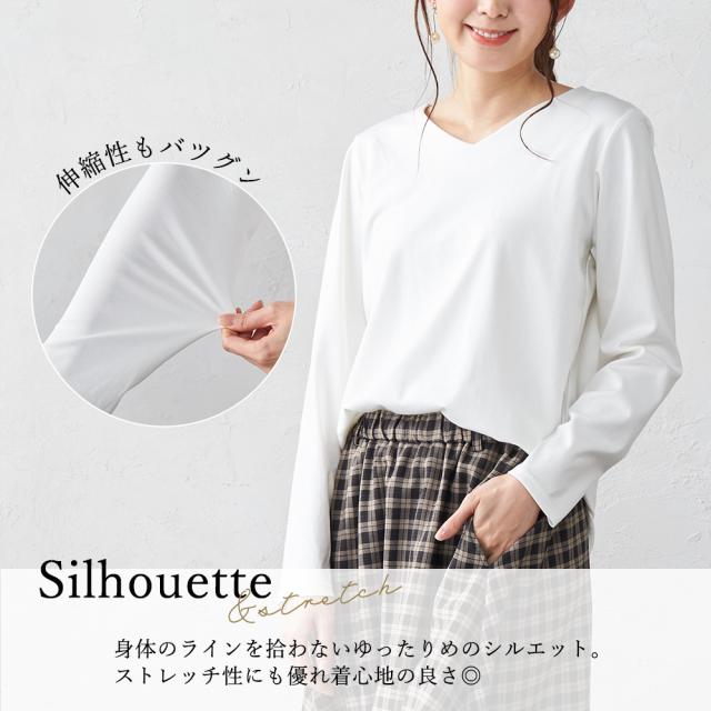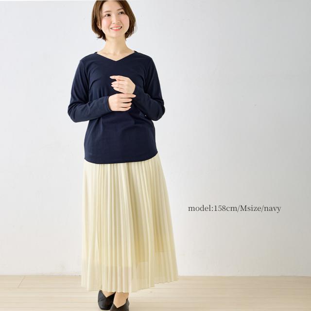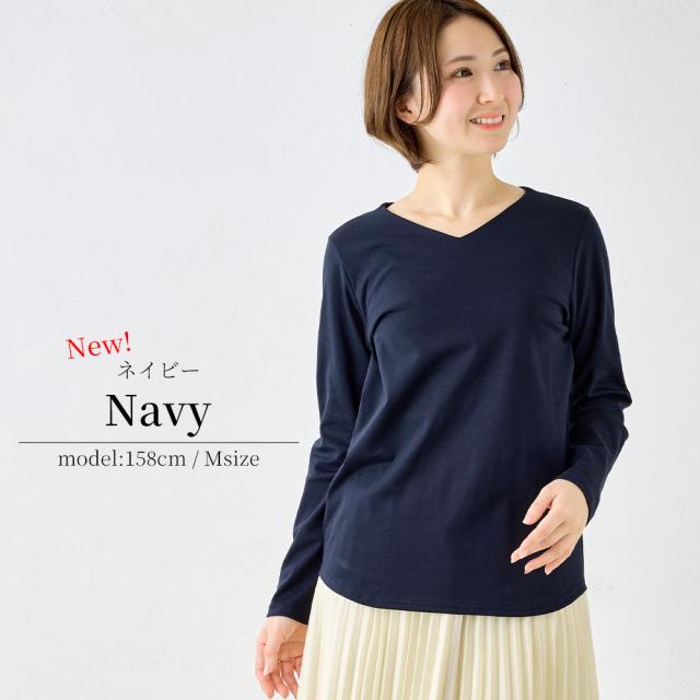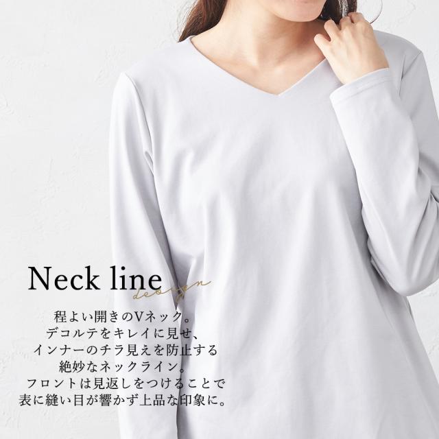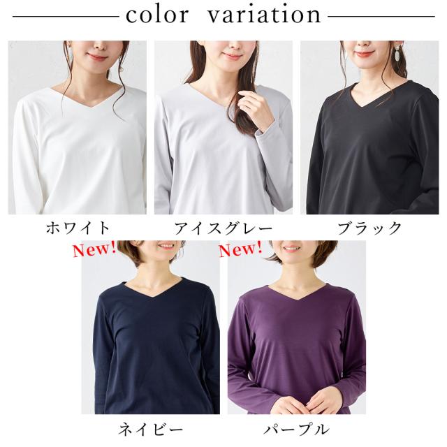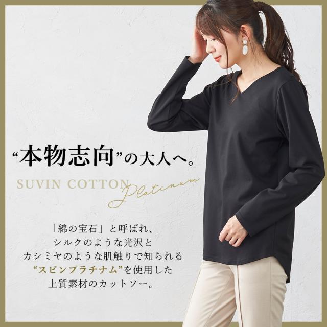 綿の宝石 スビンコットン 日本製 Vネック Tシャツ レディース 綿 コットン 綿100% 春 秋 冬 夏 長袖 カットソー トップス インナー 大きいサイズ 無地 M L 40代 50代 60代 70代 ファッション 大人 白 黒