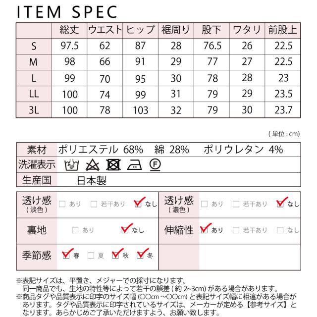 | 素材 | ポリエステル 68% 綿 28% ポリウレタン 4% |