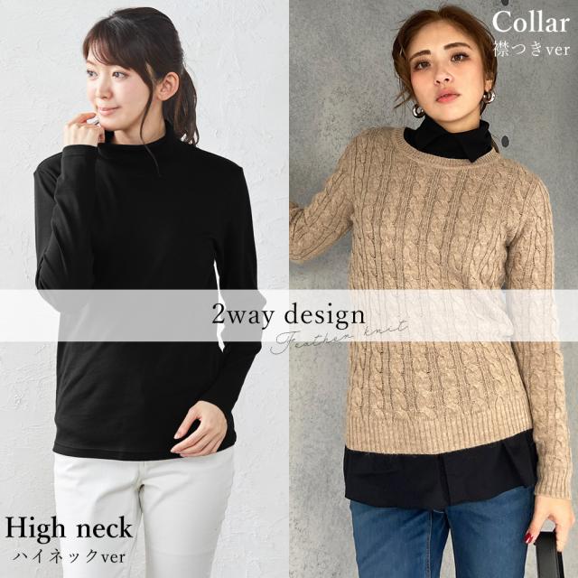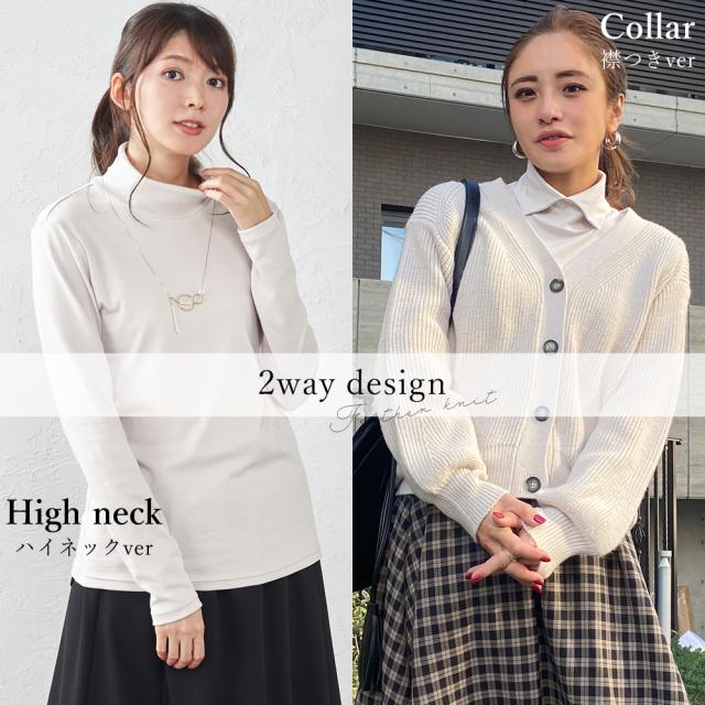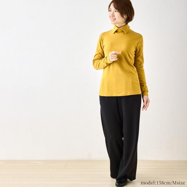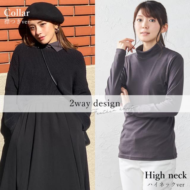 衿がついたようなデザインのタートルネック長袖tシャツ