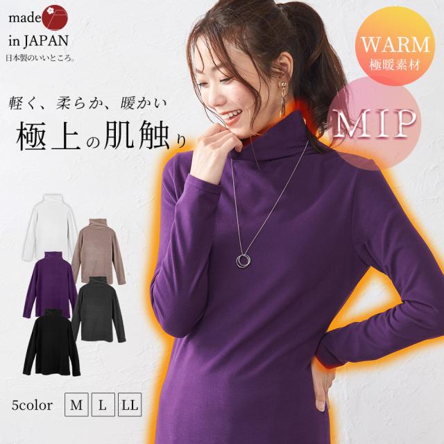 MIP ミップ 日本製 起毛 タートルネック レディース ハイネック 長袖 カットソー インナー 秋 冬 春 あったか 防寒 トップス Tシャツ 登山 暖かい あったか ふわふわ 30代 40代 50代 ファッション 黒 無地 裏起毛