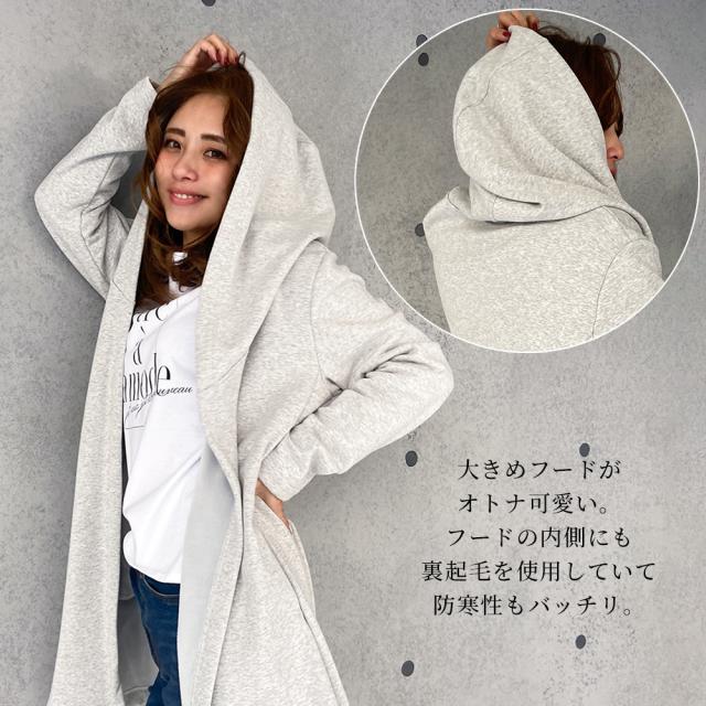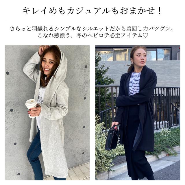 ライトアウター 羽織り コート ロング フード ポケット 厚手 あったか 暖かい