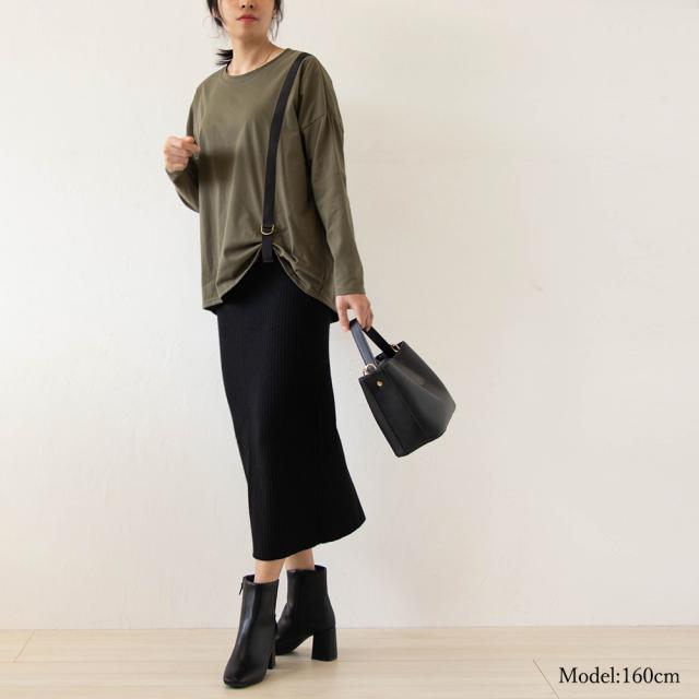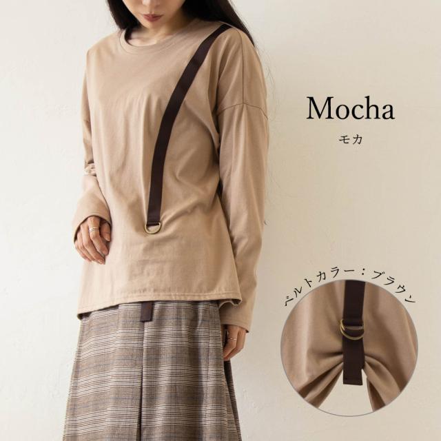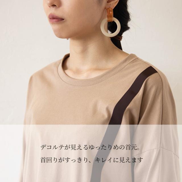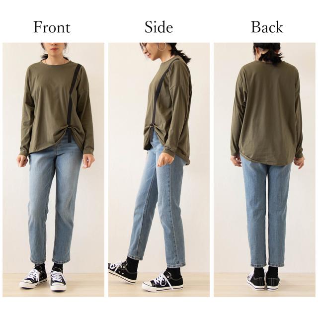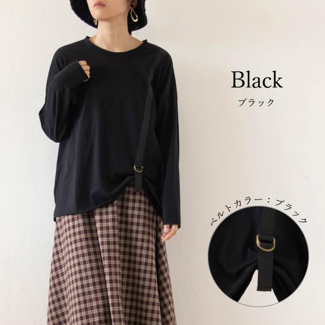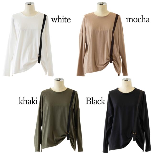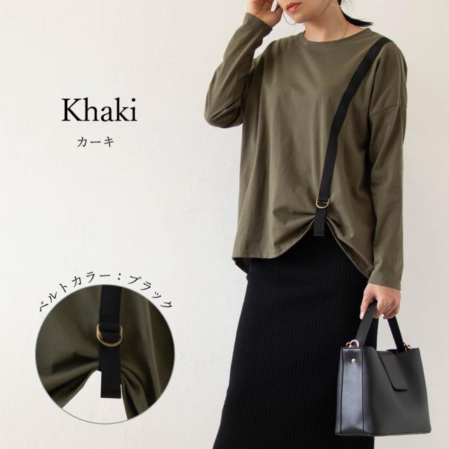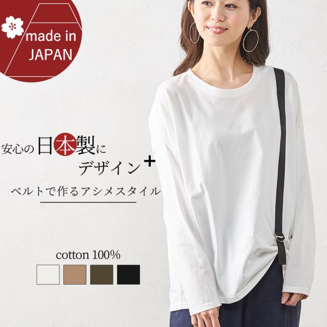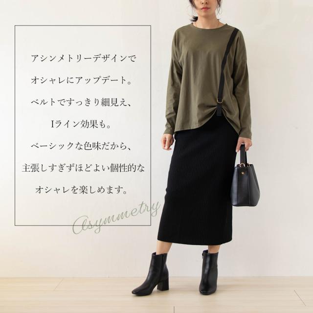 日本製 ベルト付きカットソー 綿 綿100% コットン トップス Tシャツ アシンメトリー 個性派 おしゃれ レディース カジュアル ゆったり 春 夏 秋 冬 jf 9180531