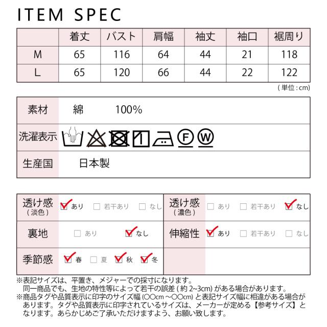 | 着丈 | バスト | 肩幅 | 裾丈 | 袖口 | 裾回り | ||