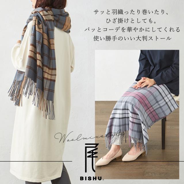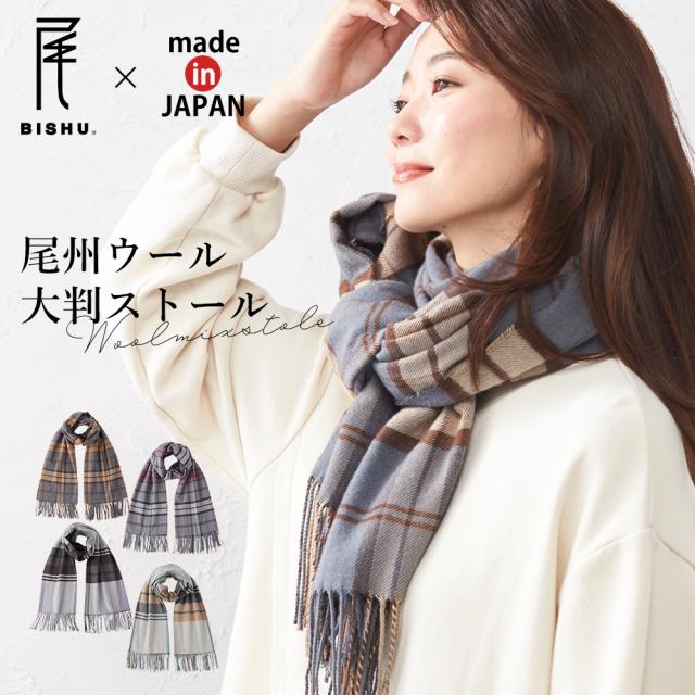 日本製 尾州ウール ストール マフラー 大判 チェック柄 プレゼント ギフト 防寒 高見え おしゃれ レディース メンズ ユニセックス 春 秋 冬 敬老の日 母の日 父の日 誕生日 クリスマス バレンタイン ホワイトデー 8500699