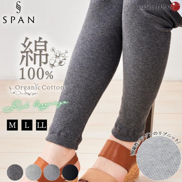 日本製 オーガニックコットン リブ リブニット リブ編み レギンス レディース 美脚 ストレッチ タイツ コットン 100% インナー ワンピースの下 ヨガ マタニティ 登山 山ガール 綿100% ルームウェア 10分丈 オールシーズン 春 夏 4130718