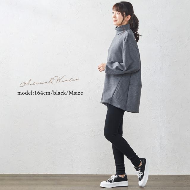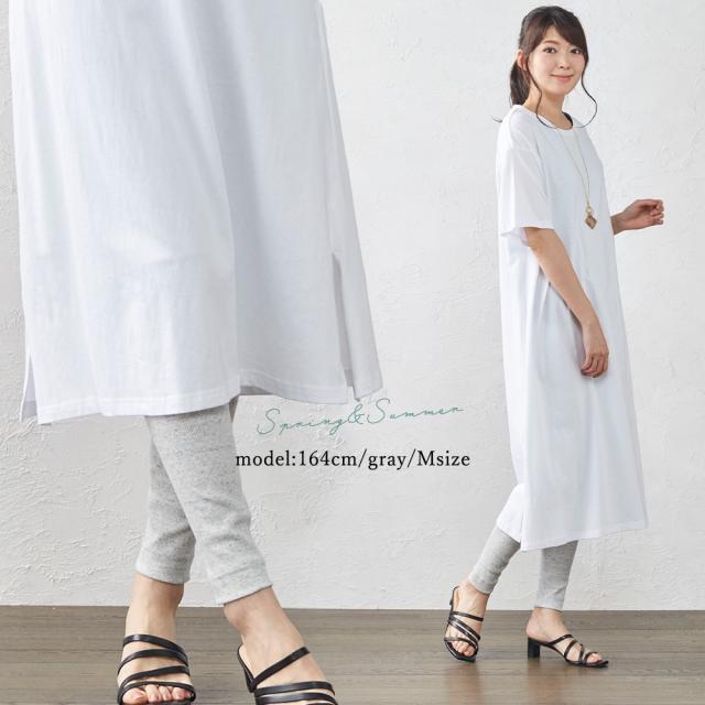 テレコ素材で生地に表面変化があり、ワンピースやチュニックの下に着用した時に無地のレギンスよりアクセントになる。