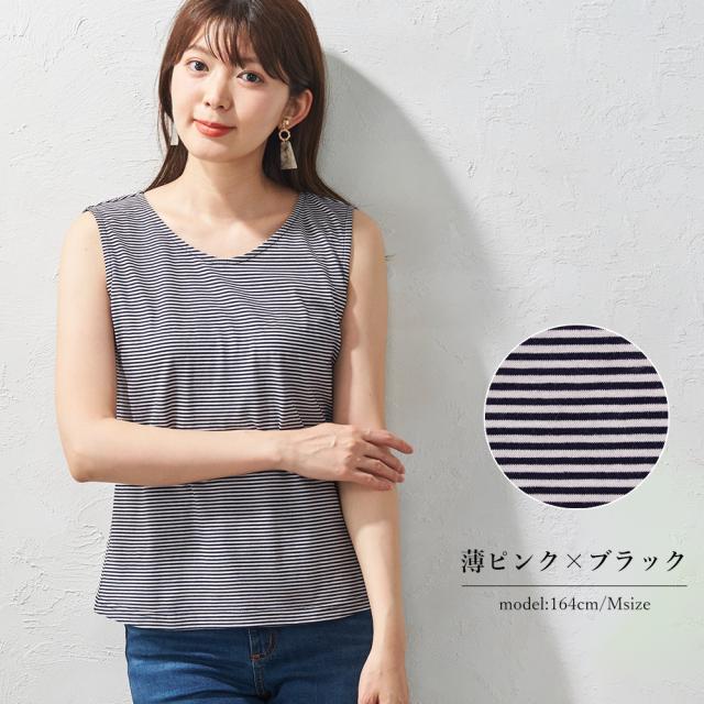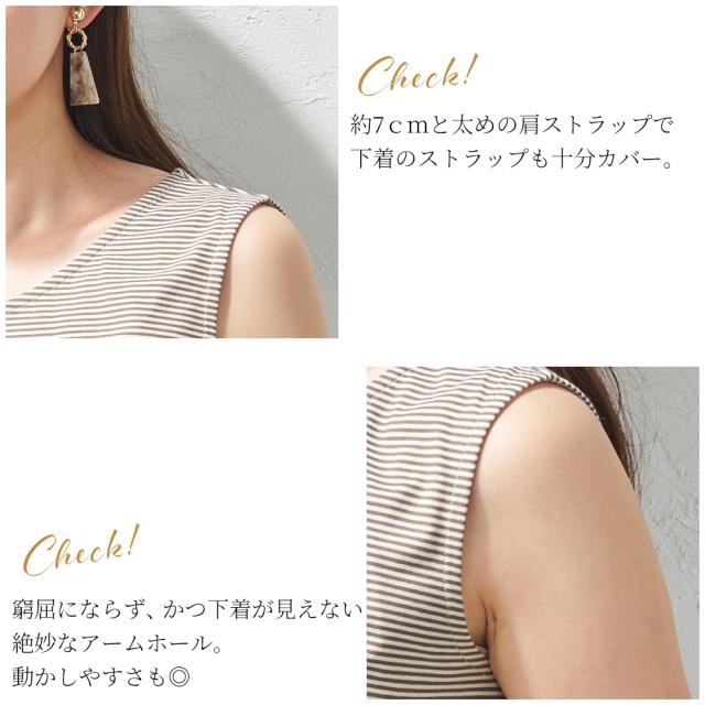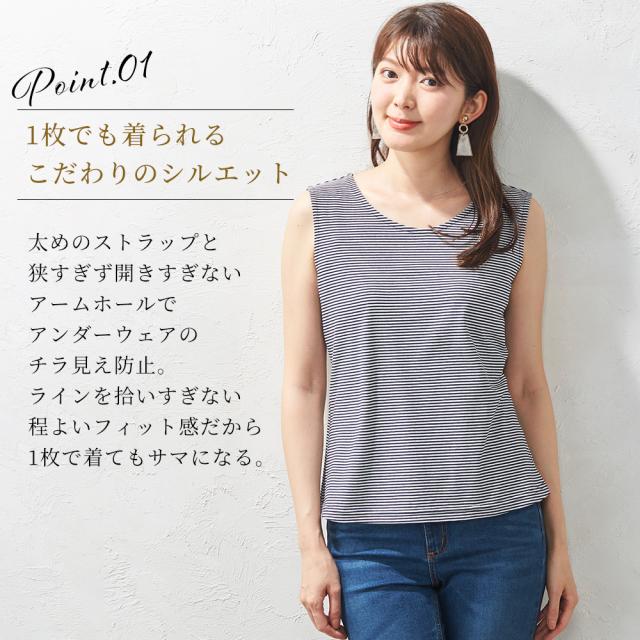 日本製 ブラ紐隠しインナー タンクトップ トップス レイヤード 重ね着 レディース ブラ紐を隠せるインナー チラ見え防止 ボーダー カジュアル 見えない cool21 rii yu nli 2024sum 3190691