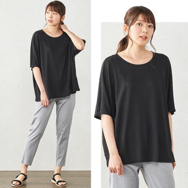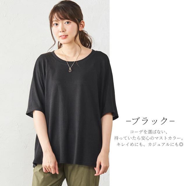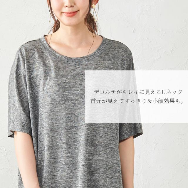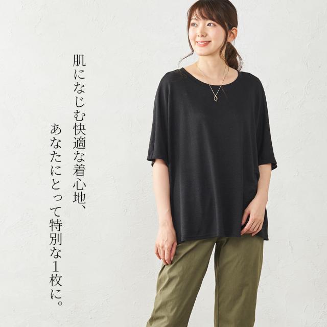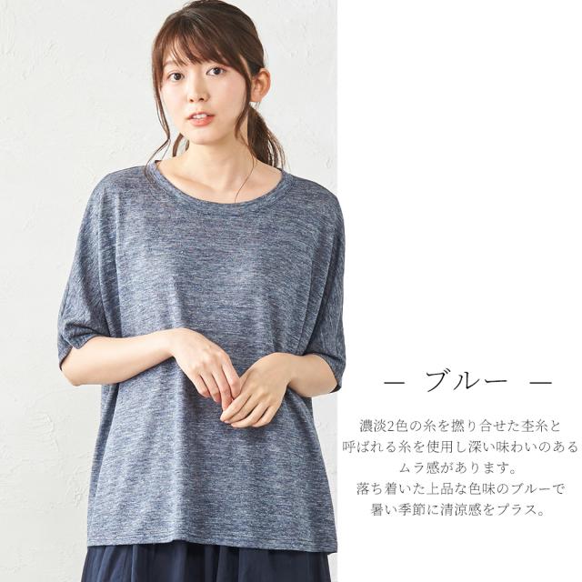 日本製 いつも快適 蒸れない やすらぎリネン 麻 リネン カットソー Tシャツ 半袖 夏 5分袖 大きいサイズ ゆったり トップス ルームウェア ニット インナー プルオーバー 麻100 レディース 30代 40代 50代 60代 ファッション 3190687