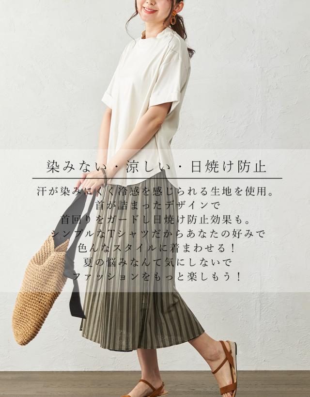 春新作 新作 新着 Tシャツ レディース 日本製 汗染み防止 オーバーサイズ トップス カットソー 半袖 5分袖 クルーネック 春夏 夏服 夏 綿 コットン 汗ジミ 汗ジミ防止 接触冷感 半袖 冷感 モックネック 綿 コットン 綿100% 日焼け防止 日焼け対策 首