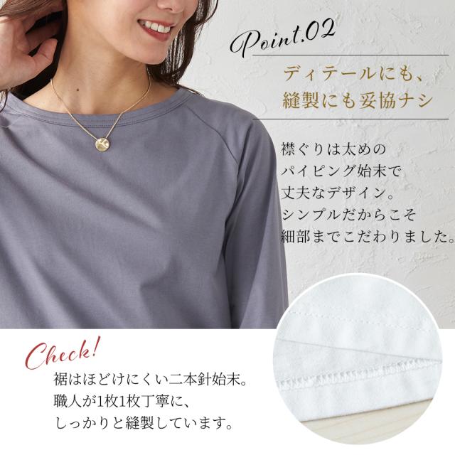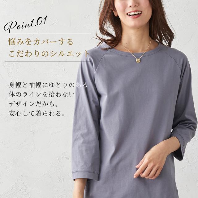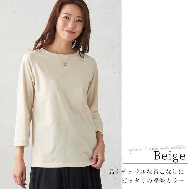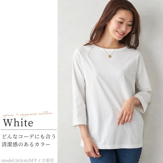 オーガニックコットン 日本製 ラグランTシャツ 七分袖 カットソー Tシャツ レディース コットン100% ラグランスリーブ 七分袖 UVカット トップス UVケア ゆったり 大きいサイズ コットン 綿100 30代 40代 50代 60代 春 夏 秋 白 黒 無地