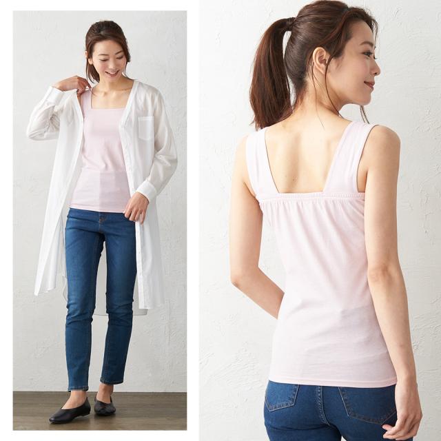 日本製 ブラ紐隠しインナー M/L/LL ブラ紐隠し タンクトップ レディース ブラ紐 見えない キャミソール ブラ紐を隠せる 綿100 コットン 接触冷感 インナー 大きいサイズ スクェアネック jf 3190658