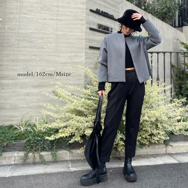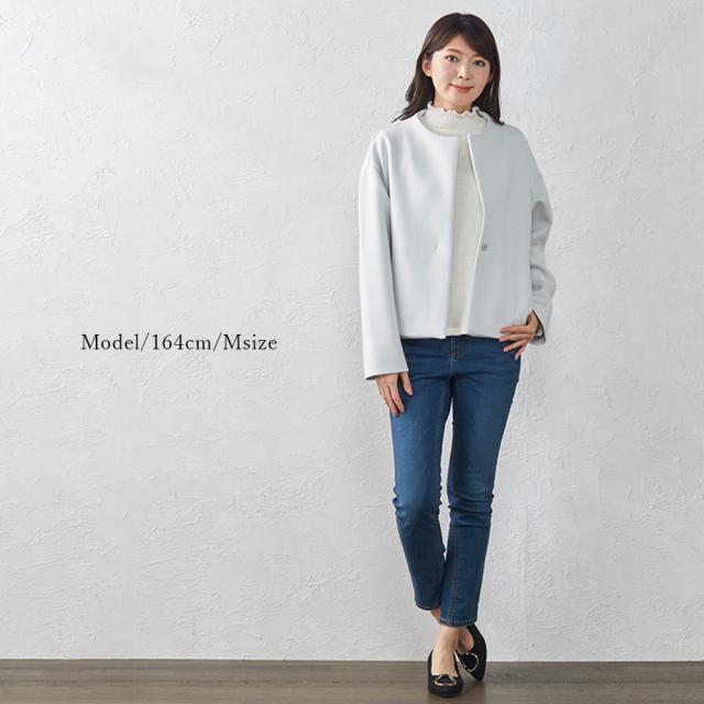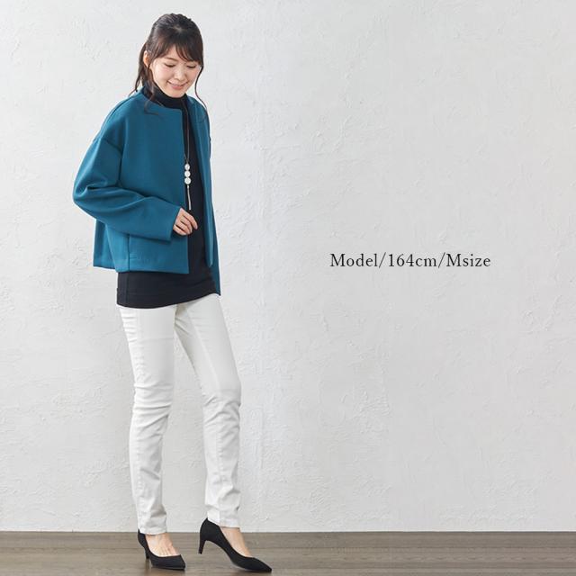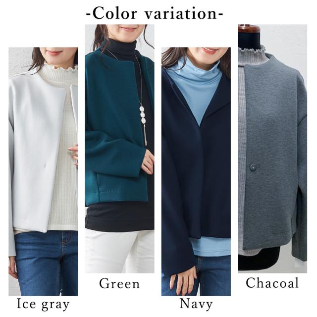 日本製 空気の層を包み込む ダンボールニット暖かい ノーカラー ジャケット ブルゾン ストレッチ レディース 軽量 軽い 温かい アウター ゆったり 秋 冬 春 ウエスト切替 大きいサイズ 卒業式 入学式 秋 冬 7150377