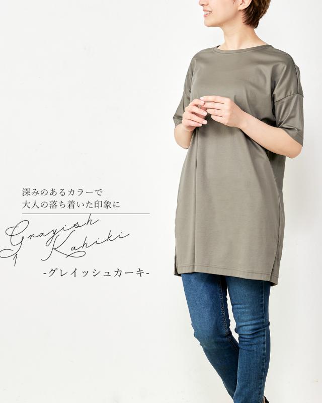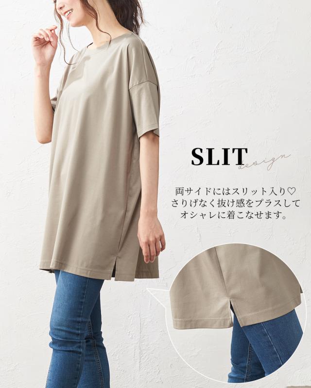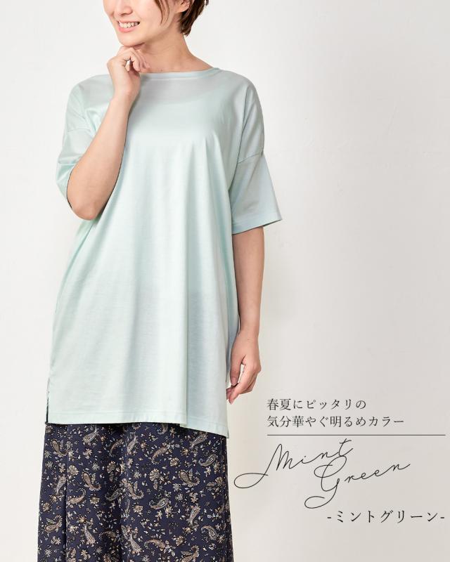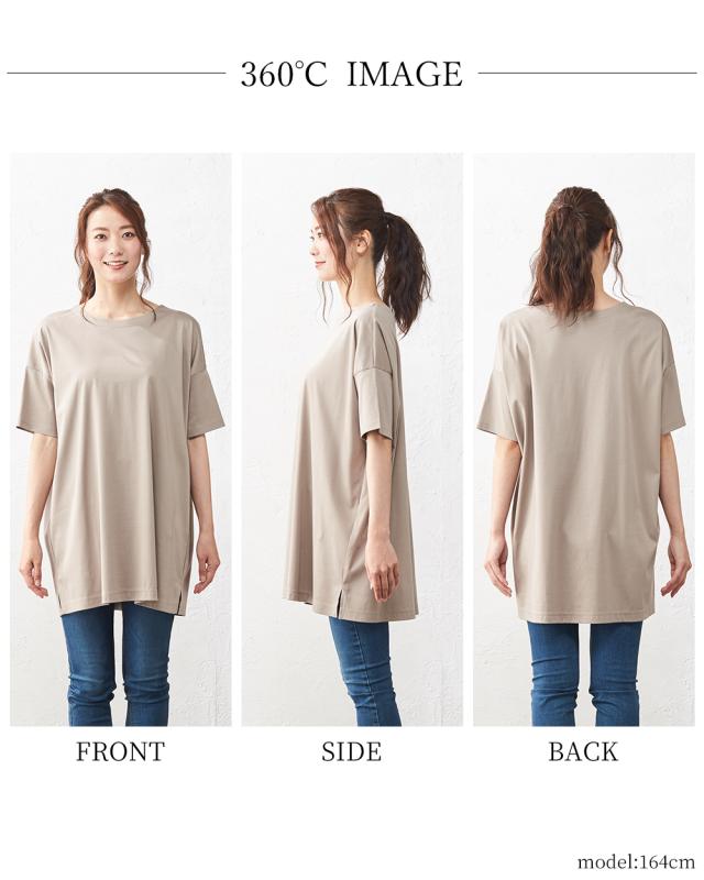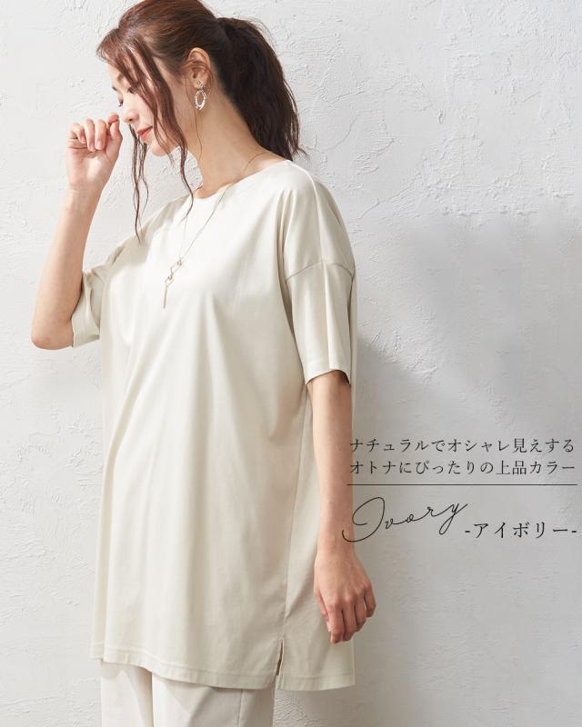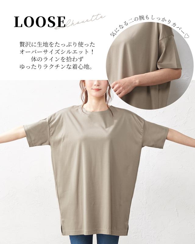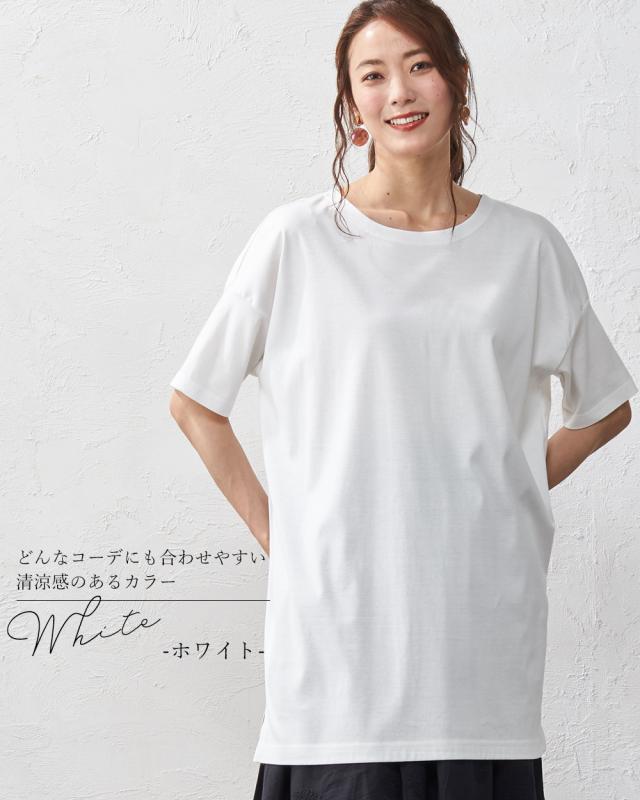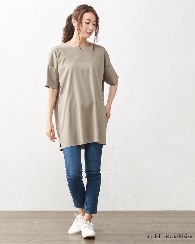 Tシャツ カットソー オーバーサイズ ゆったり レディース 半袖 五分袖 汗ジミ防止 日本製 接触冷感 UVカット 綿100% コットン 6190795