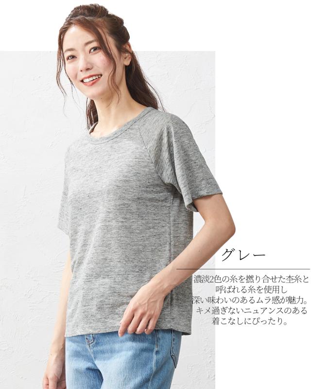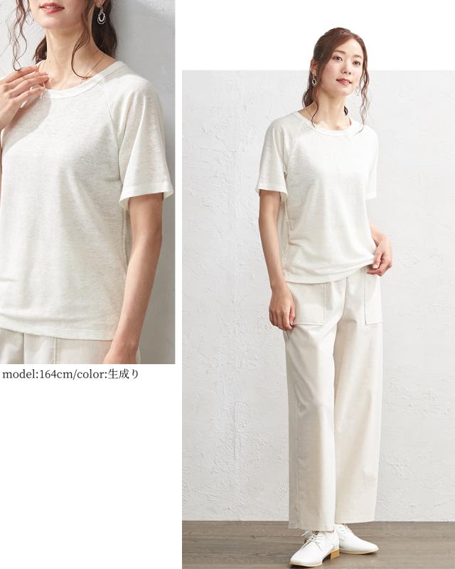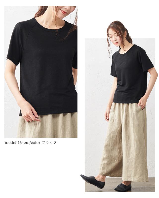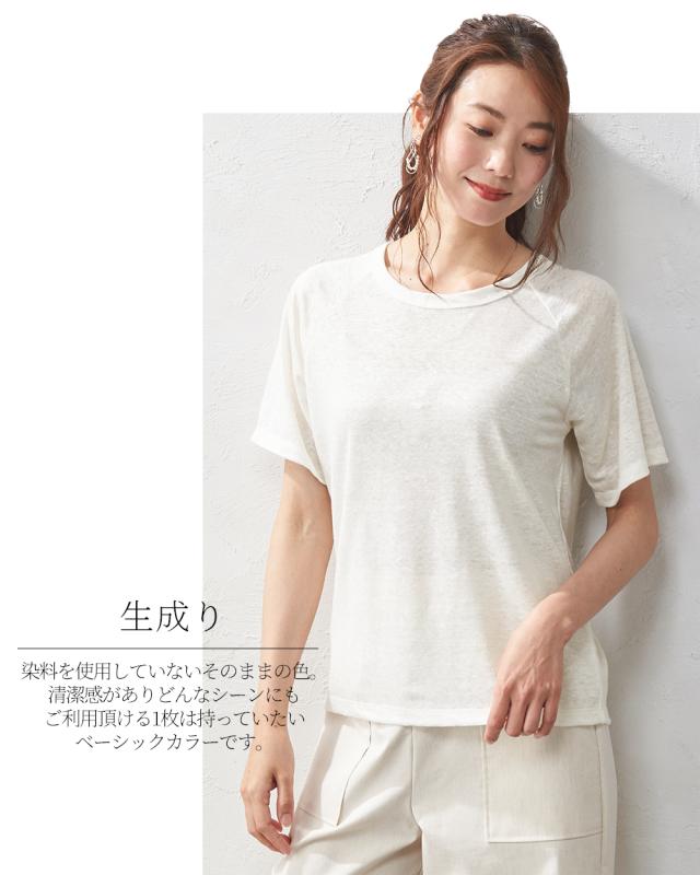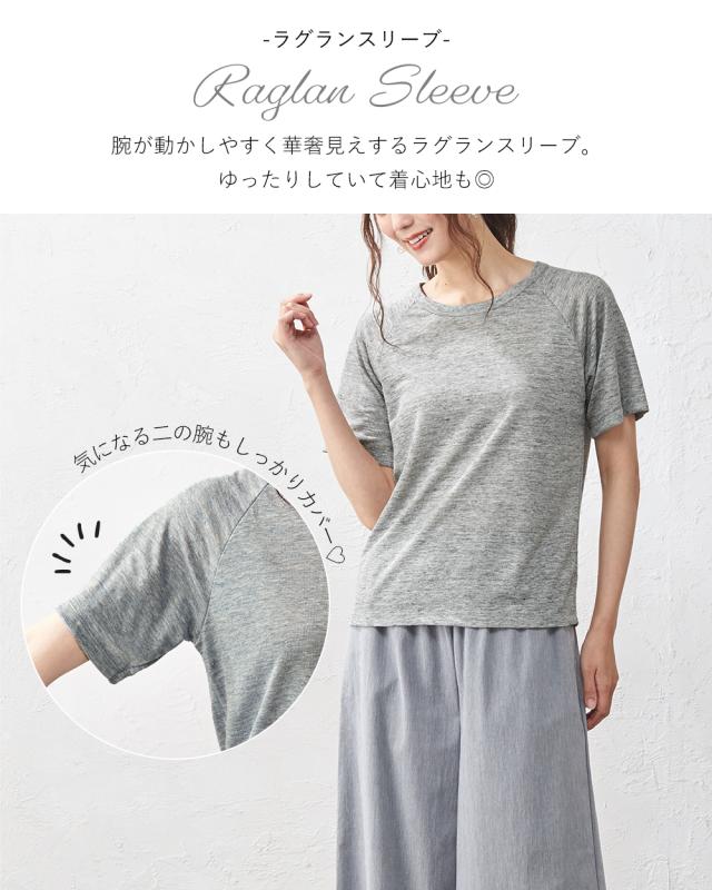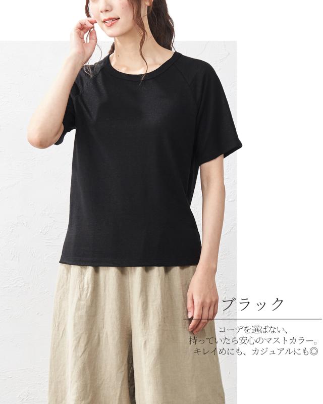 日本製 麻 リネン ちくちくしない ラグランTシャツ 半袖 Tシャツ レディース トップス カットソー インナー クルーネック ラウンドネック 五分袖 半袖 春夏 無地 シンプル ベーシック ウォッシャブル 洗える ゆったり 大きいサイズ 体型カバー
