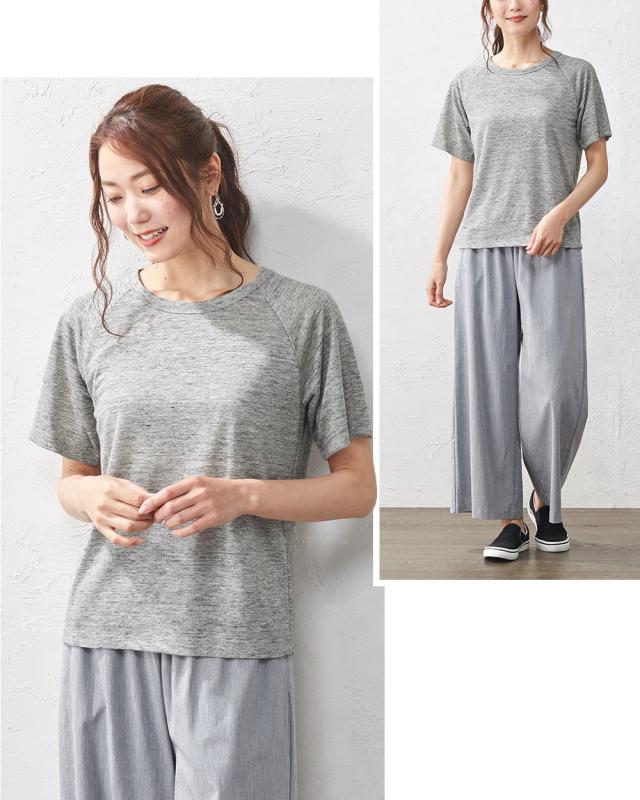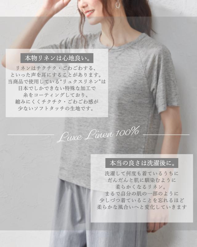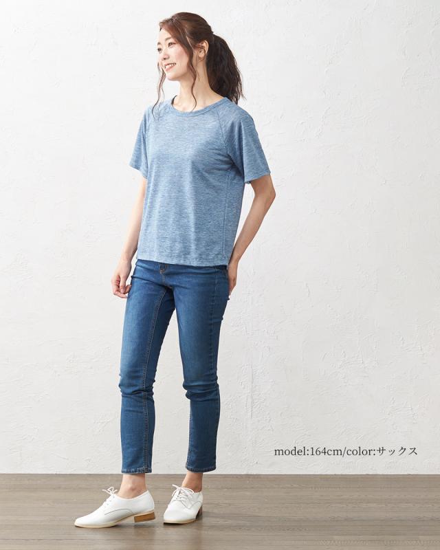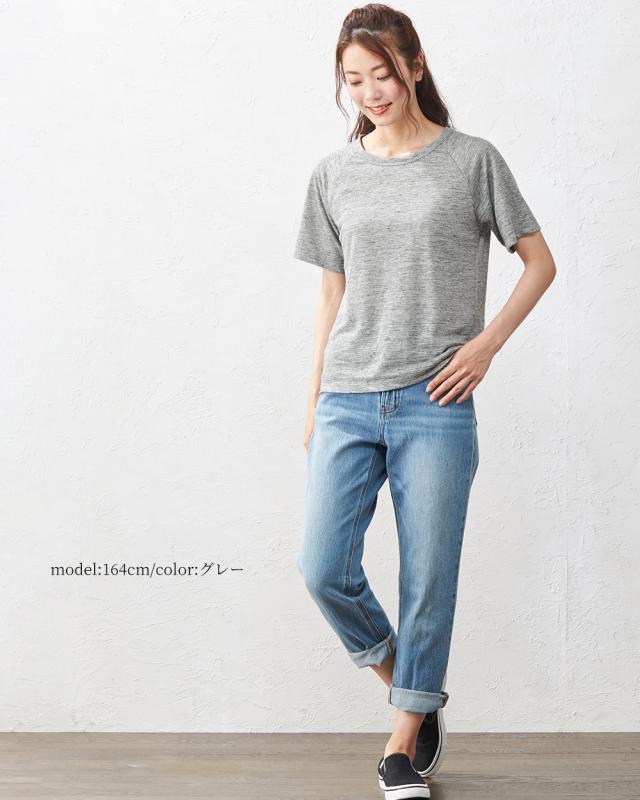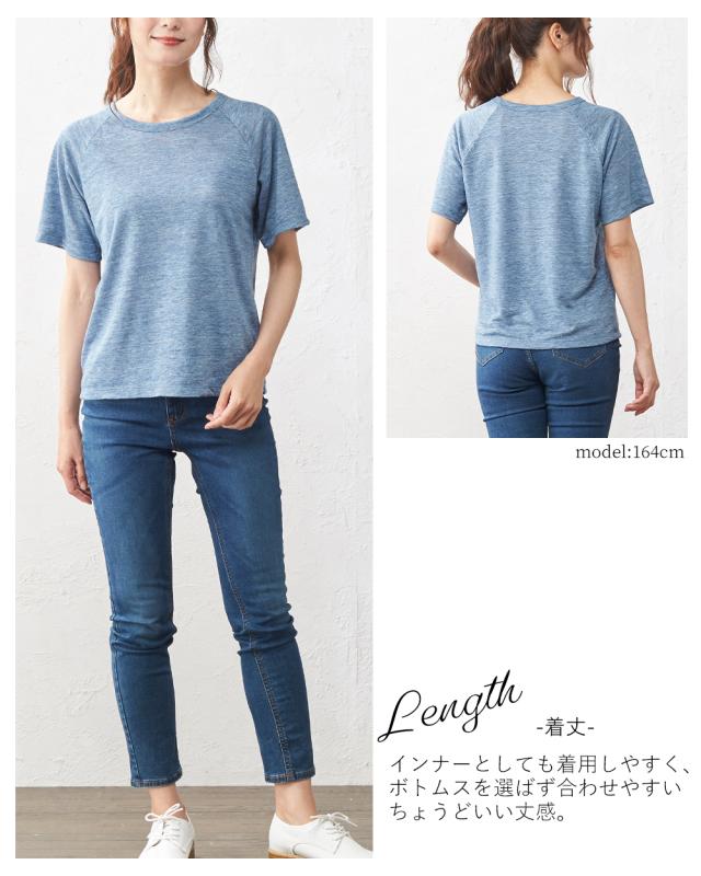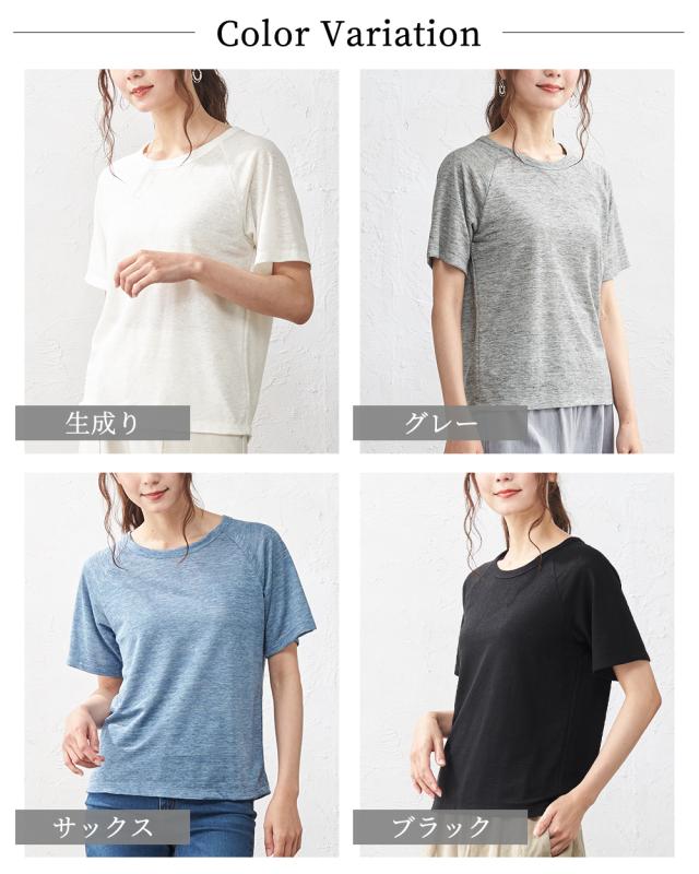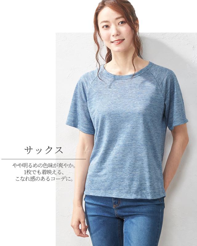 日本製 麻 リネン ちくちくしない ラグランTシャツ 半袖 Tシャツ レディース トップス カットソー インナー クルーネック ラウンドネック 五分袖 半袖 春夏 無地 シンプル ベーシック ウォッシャブル 洗える ゆったり 大きいサイズ 体型カバー