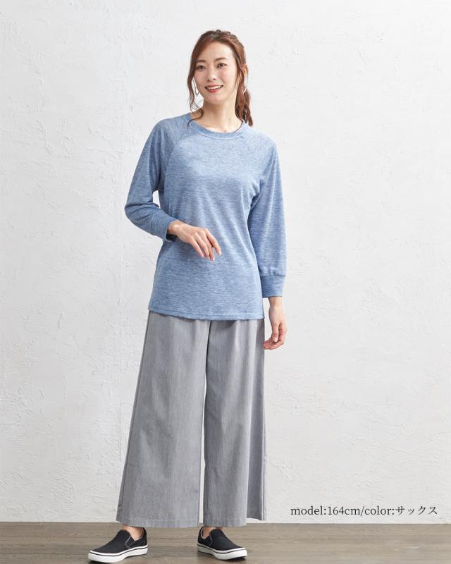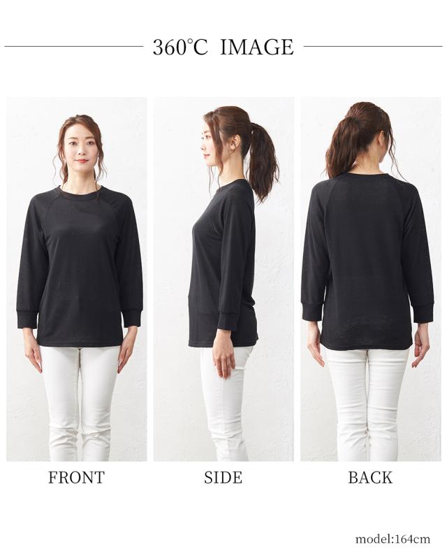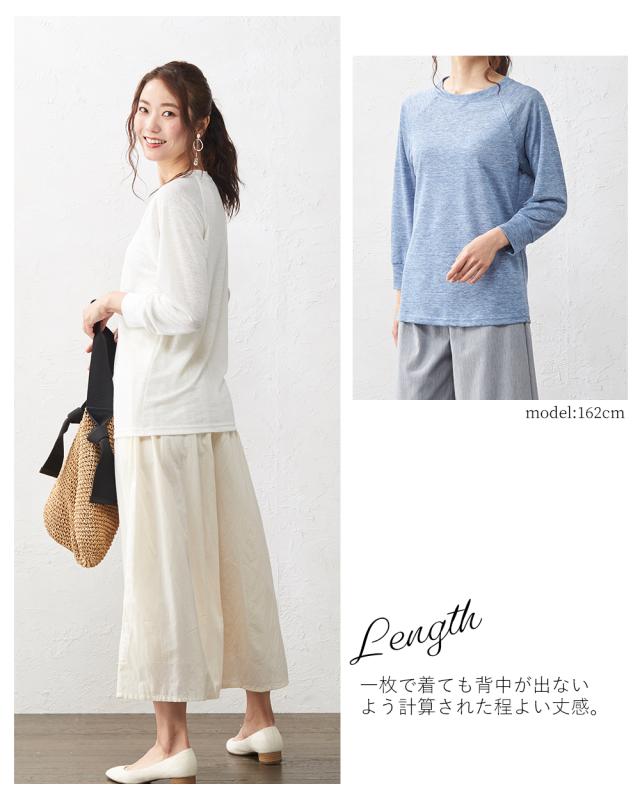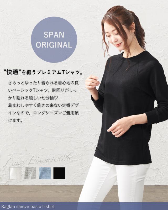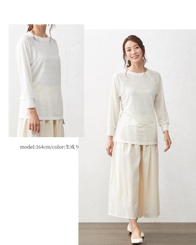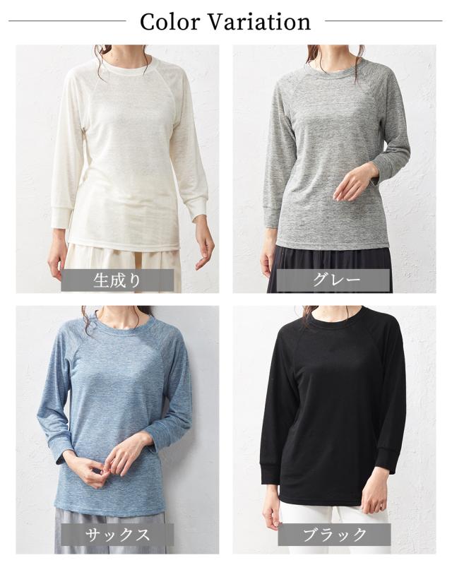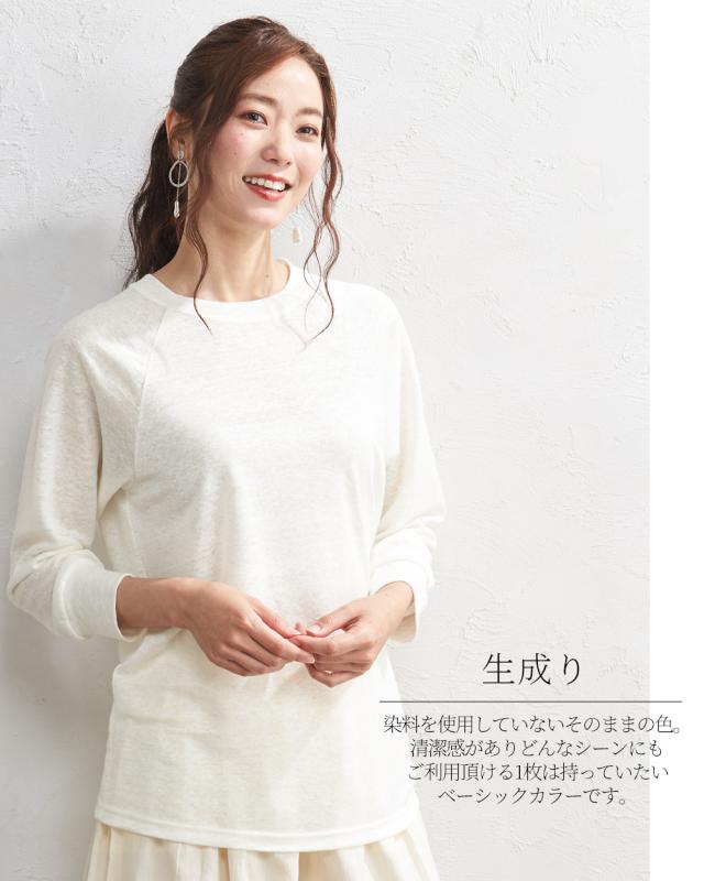 日本製 麻 チクチクしない リネン ラグランTシャツ ロンT Tシャツ レディース トップス カットソー インナー クルーネック ラウンドネック 七分袖 長袖 春夏 無地 シンプル ベーシック 洗える ゆったり 大きいサイズ 体型カバー 6190788