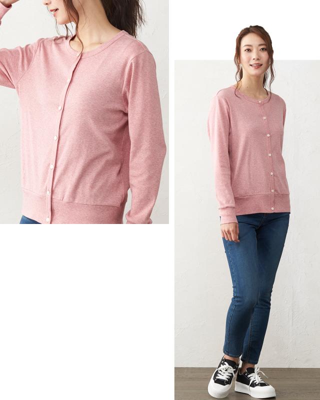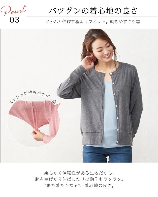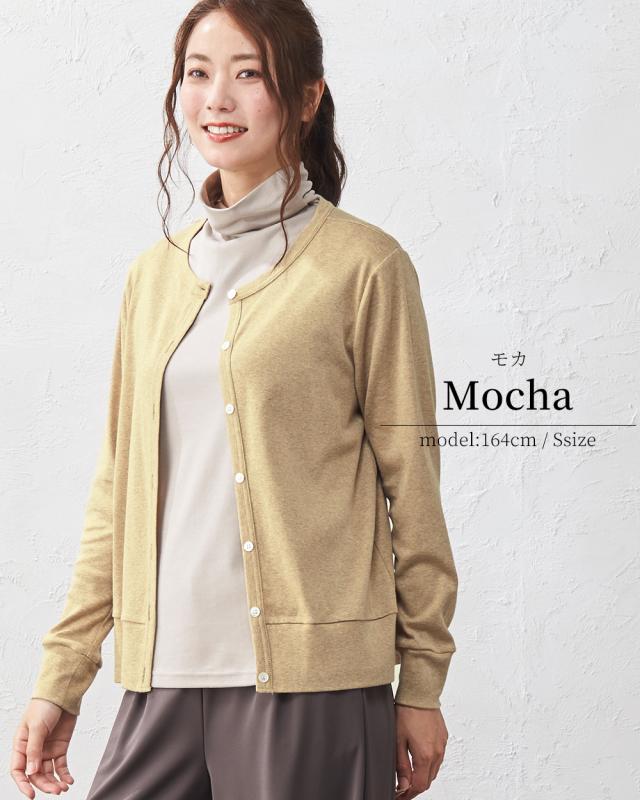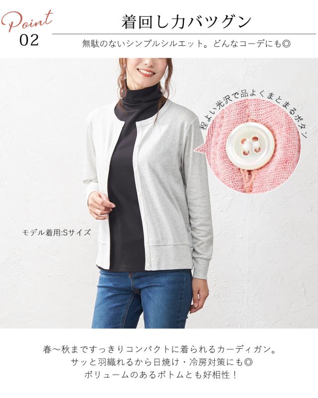 >カーディガン オーガニックコットン 綿 羽織り 長袖 クルーネック フェミニン オフィスカジュアル カジュアル UV 紫外線対策 日本製 洗える 吸汗 ゆったり 大きいサイズ ストレッチ 伸縮性 柔らか ジャージ 薄手 触り心地 国内 人気 自宅洗濯 手洗い 洗えるイージーケア クールビズ 綿100% コットン