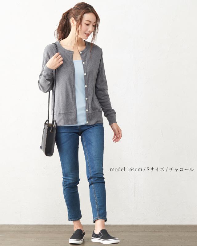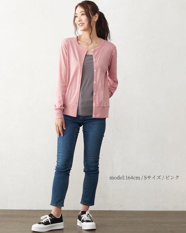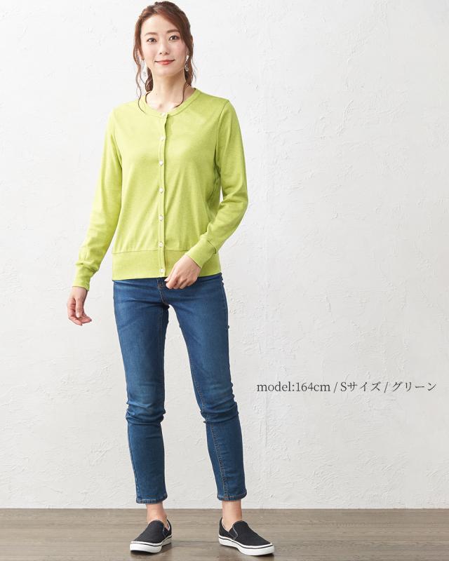 日本製 レディース オーガニックコットン カーディガン トップス カットソー 羽織り カーディガン アウター 長袖 クルーネック 春夏 綿 コットン UV 紫外線対策 ウォッシャブル 洗える きれいめ オフィスカジュアル 事務服