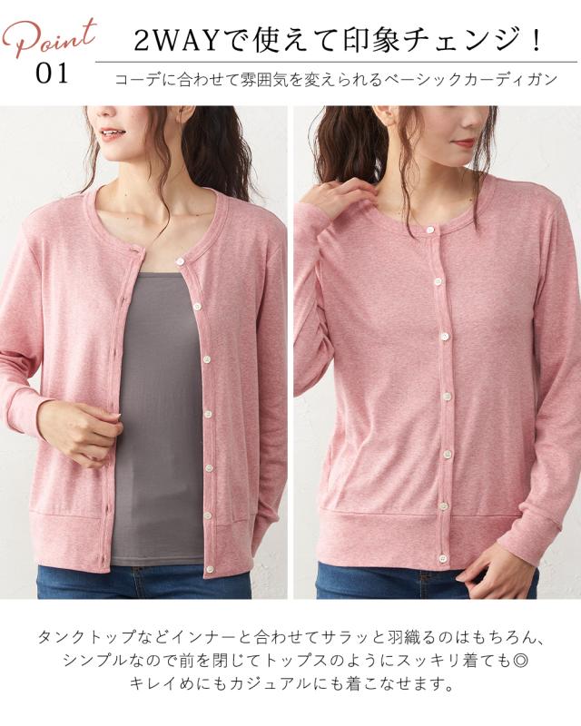ベーシックなカーディガンは秋口や春先の寒さ対策にはもちろん夏の冷房対策や日焼け対策にも最適です。