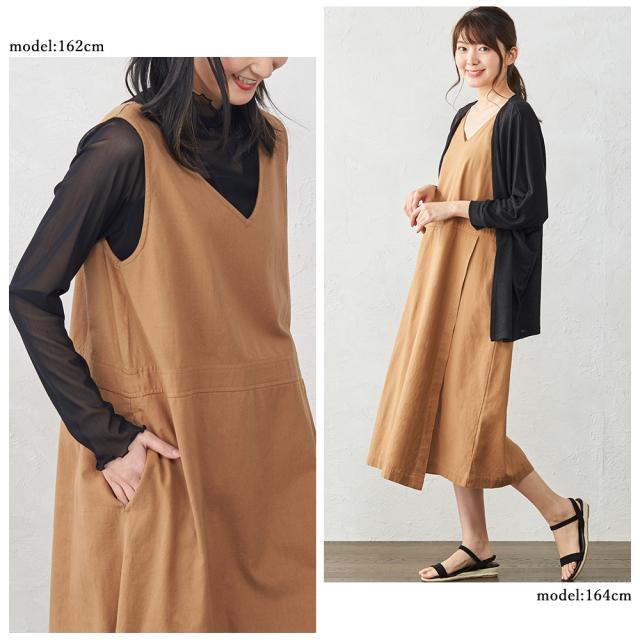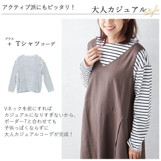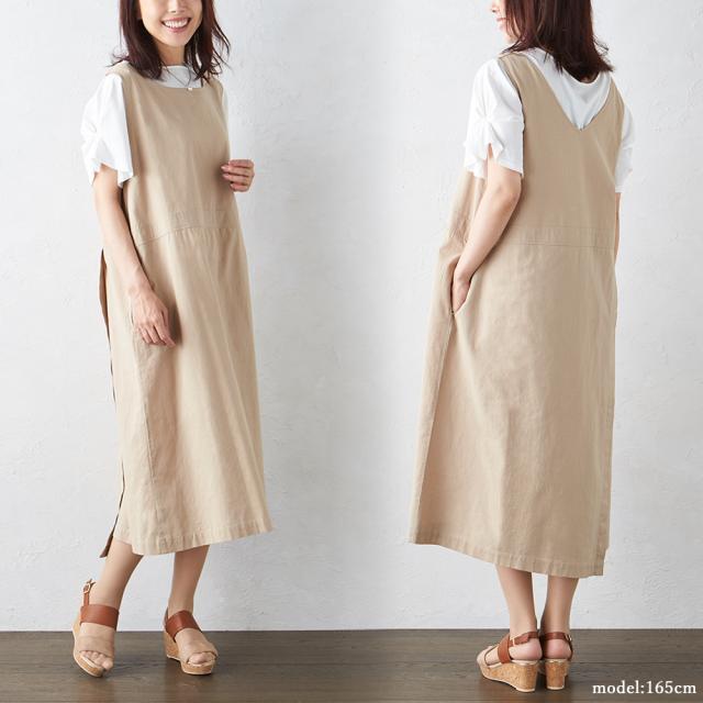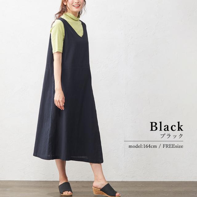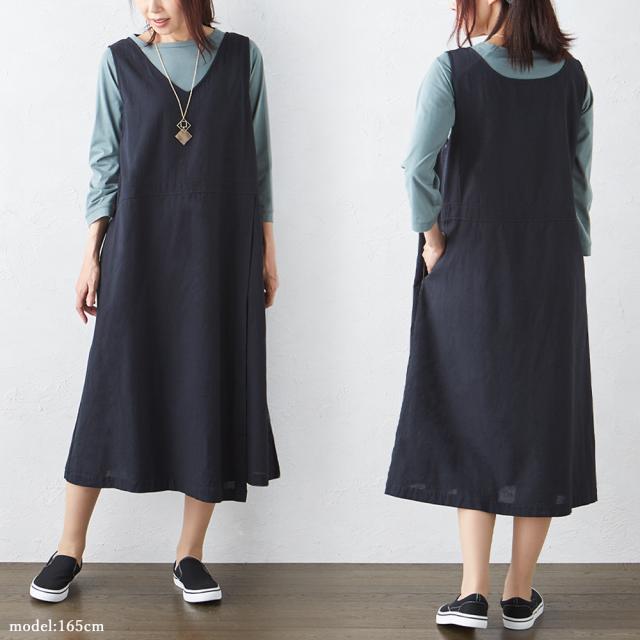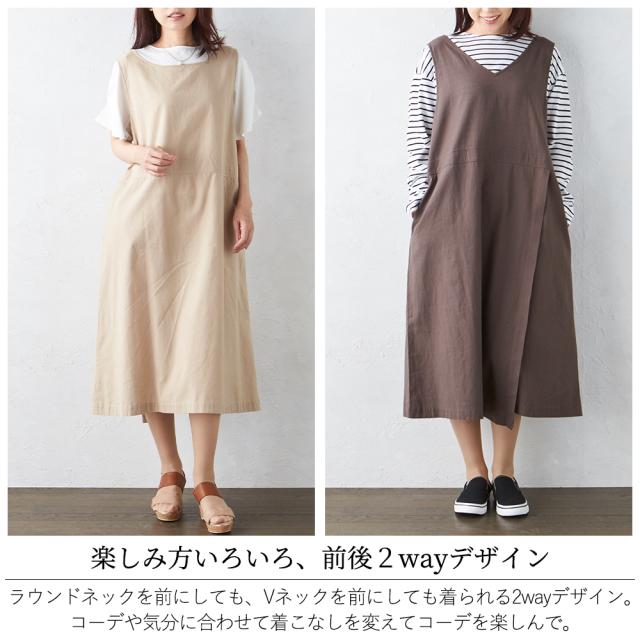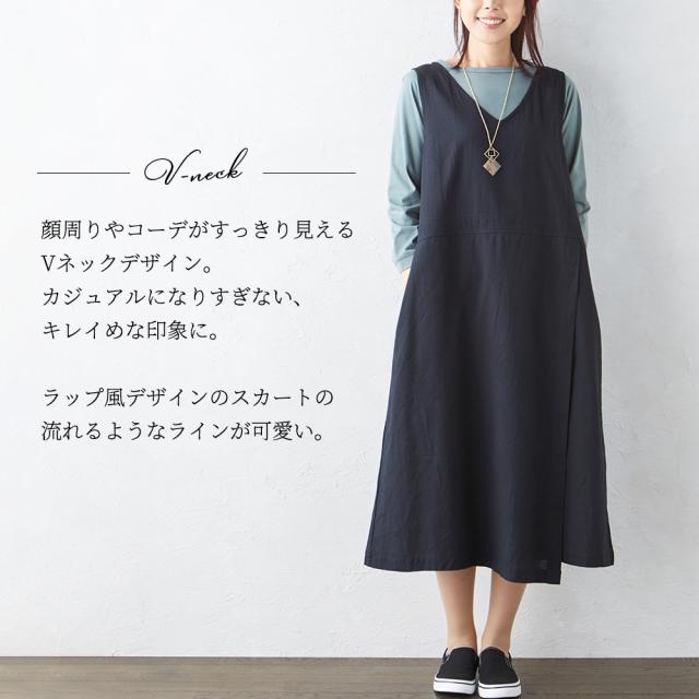 ジャンスカ ジャンパースカート ジャンスカワンピース エプロンドレス ロング丈 ワンピース Vネック 夏