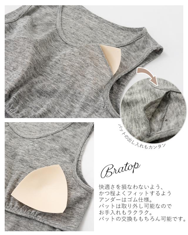 タンクトップ レディース カップ付き ブラトップ レディースインナー スポーツ リネン 麻 袖なし ノースリーブ ヨガウェア 下着
