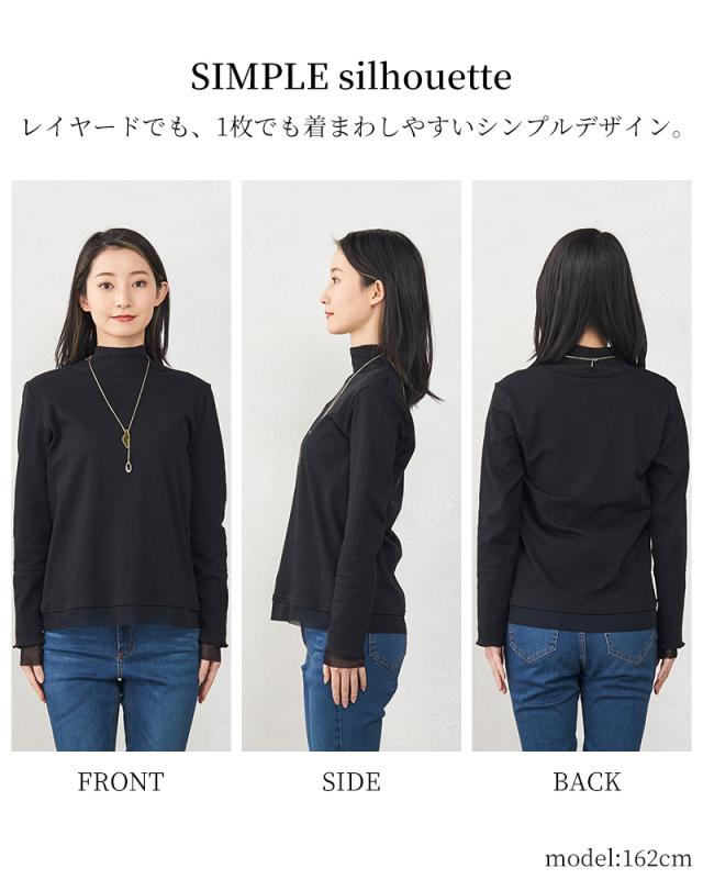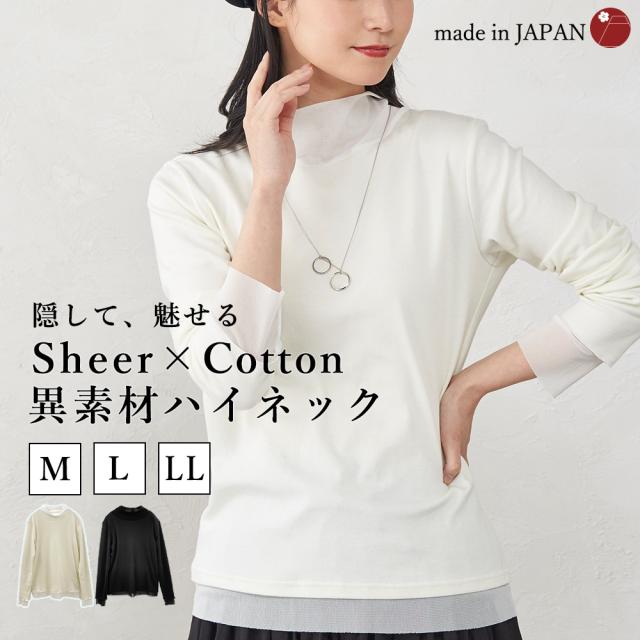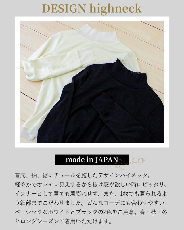 【日本製】 コットン100% シアーハイネック チュール レディース 綿100 カシミヤタッチ フェザーニット 極上の着心地 トップス カットソー 大きいサイズ 無地 M L LL 30代 40代 50代 ハイネック インナー タートルネック 5190772