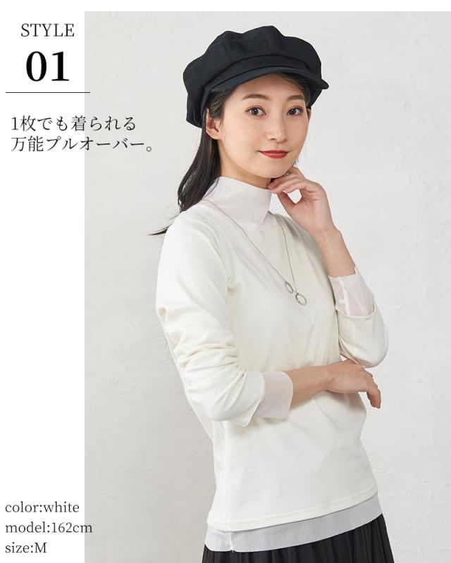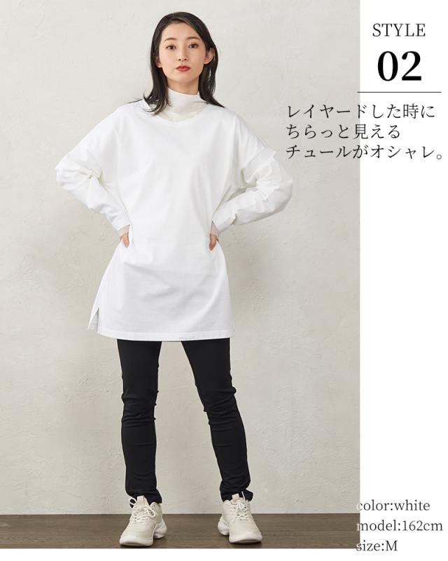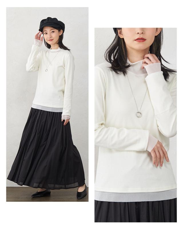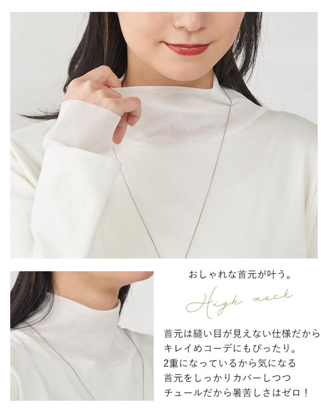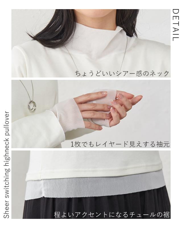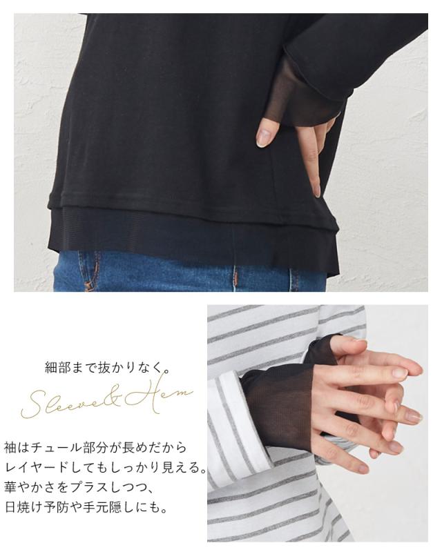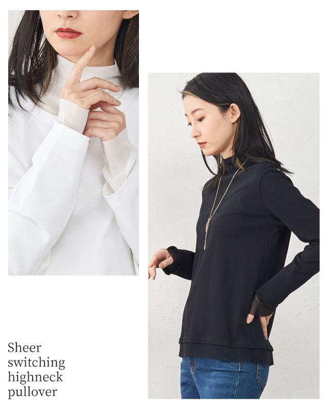 レディース トップス ブラウス カットソー 長袖 ハイネック チュール シアー